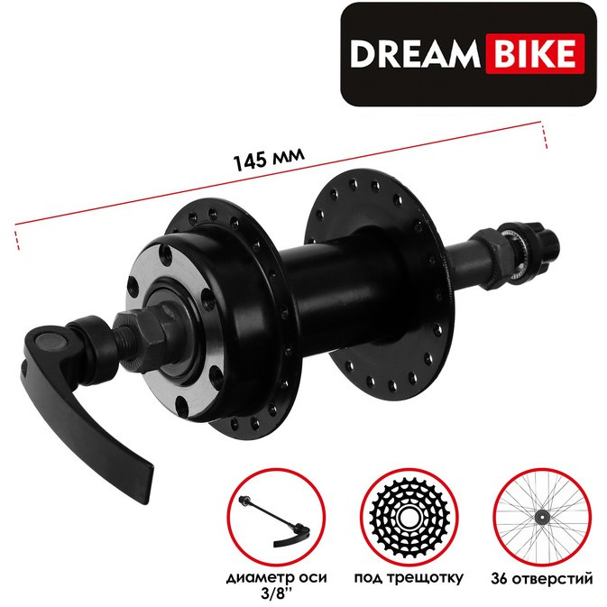 Втулка предназначена для многоскоростных велосипедов. Изделие имеет длину оси 145 мм и насыпные подшипники. Втулка совместима с дисковой тормозной системой и подойдёт для колёс с 36 спицами.