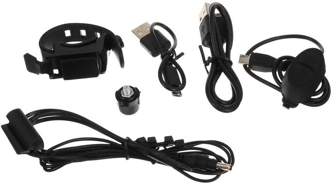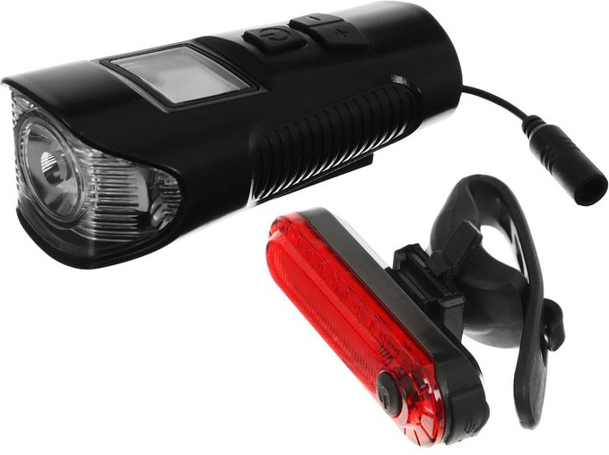 Комплект фонарей предназначен для велосипедов и самокатов. Фонари имеют встроенные аккумуляторные батареи. В набор входит звонок и велокомпьютер с пятью функциями.