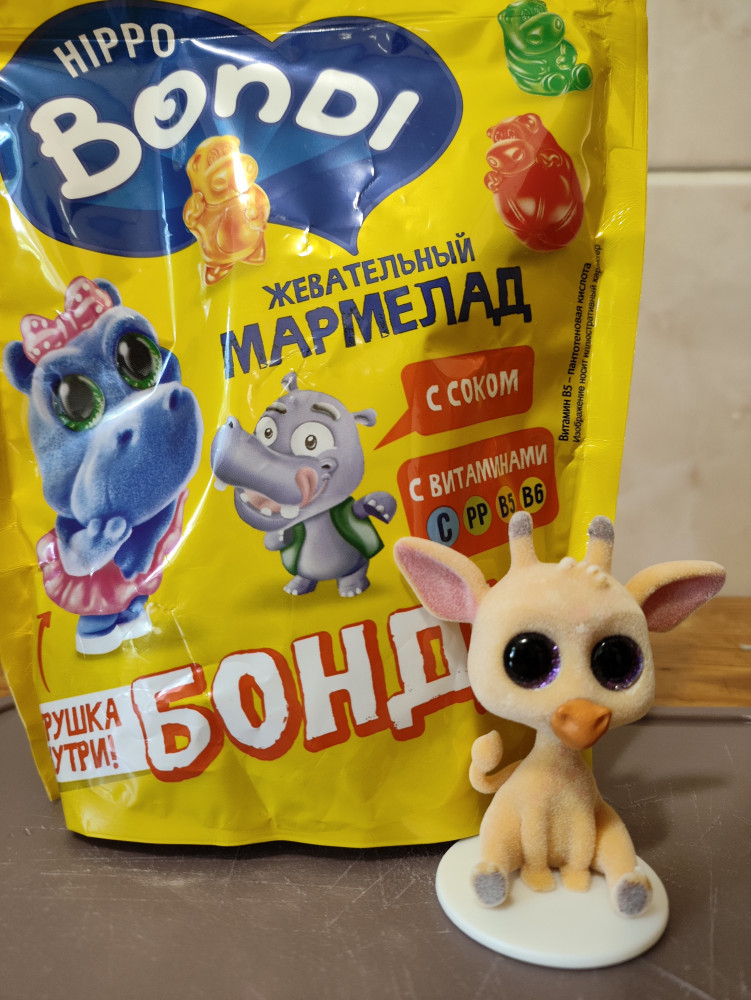 Классный мармелад с игрушкой. Дочке попался милый жирафик, довольно большой, приятный на ощупь, с выразительными блестящими глазами.