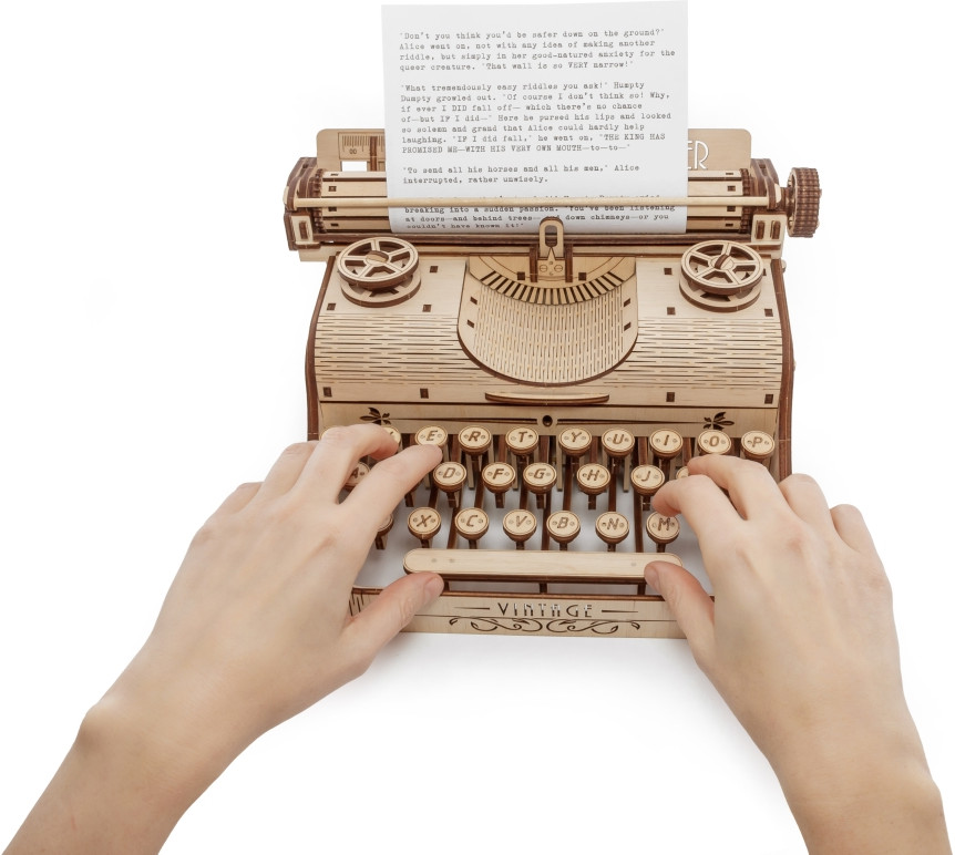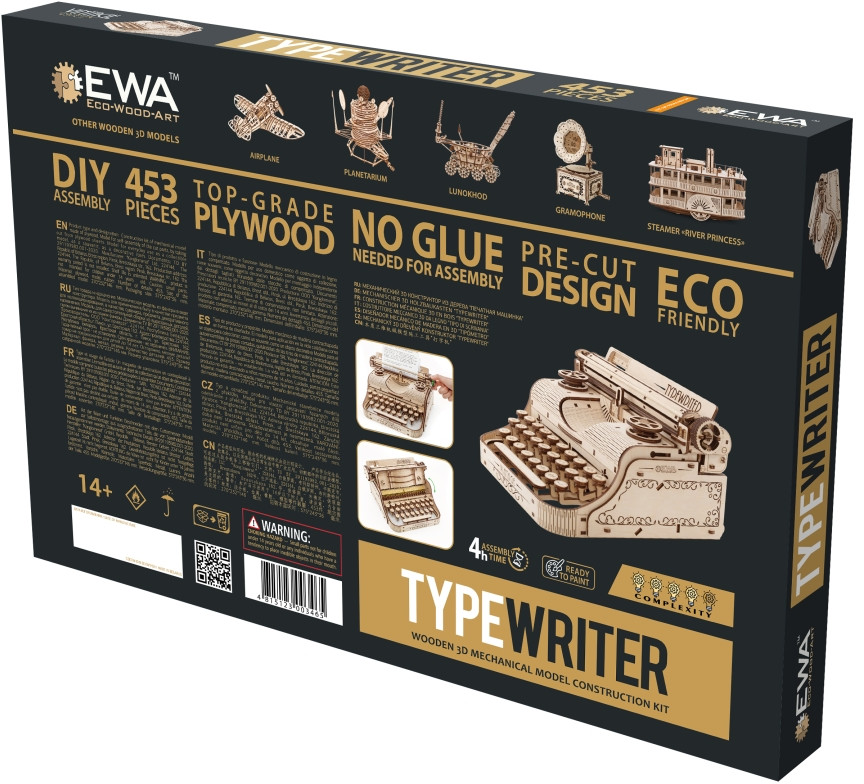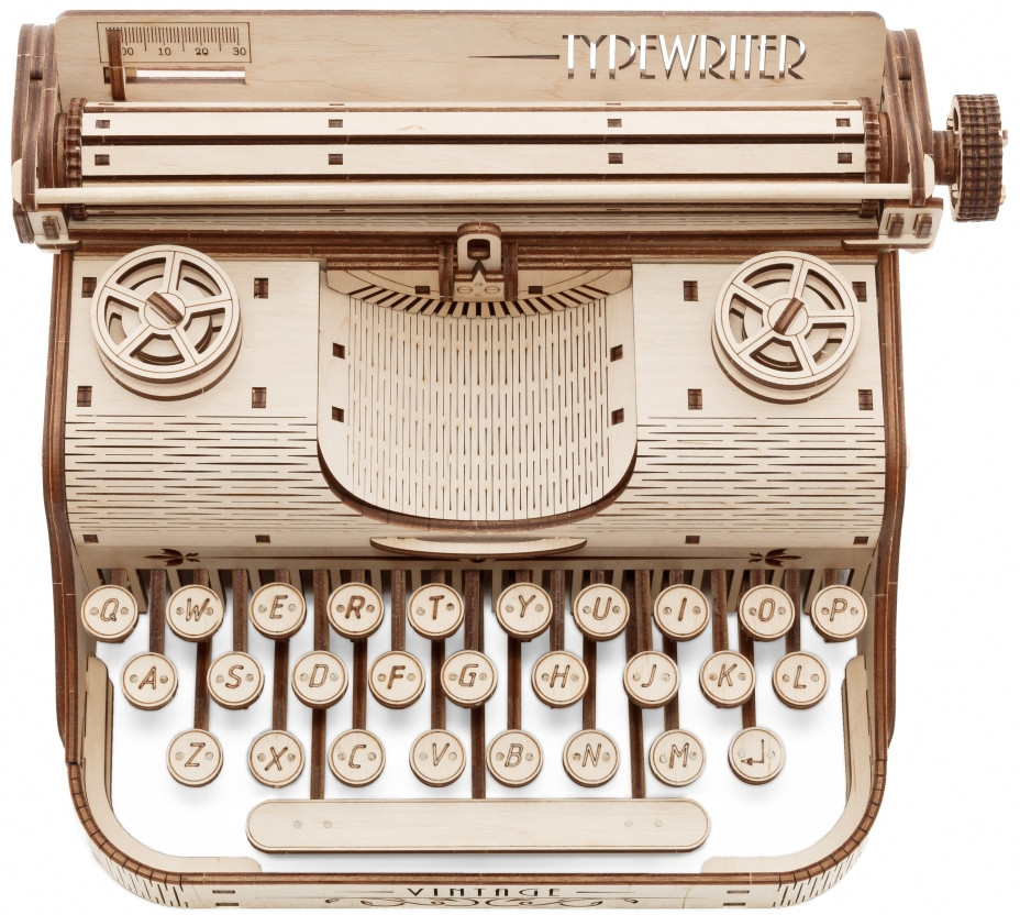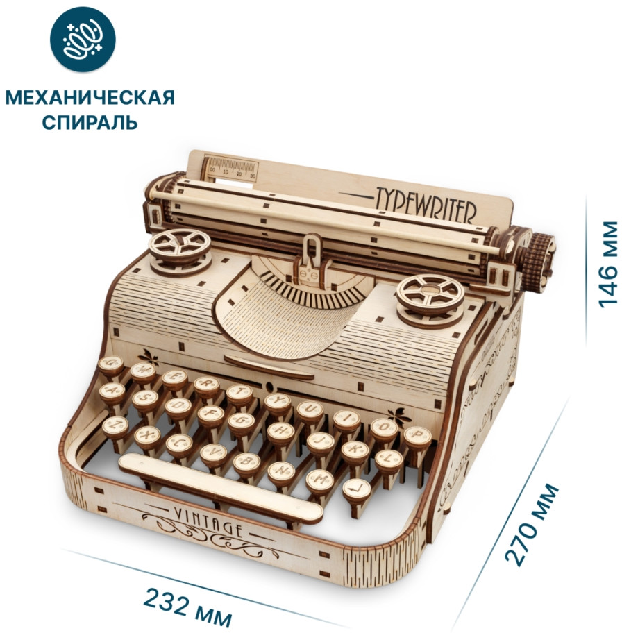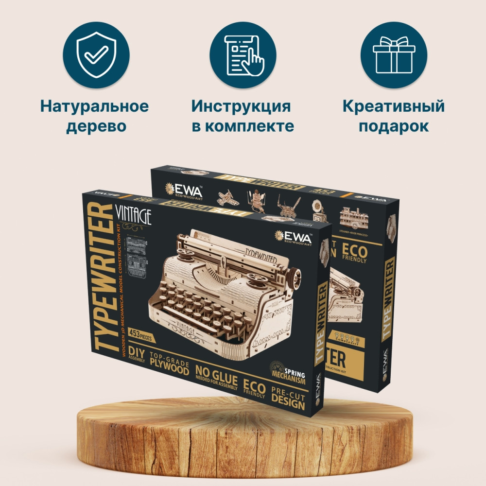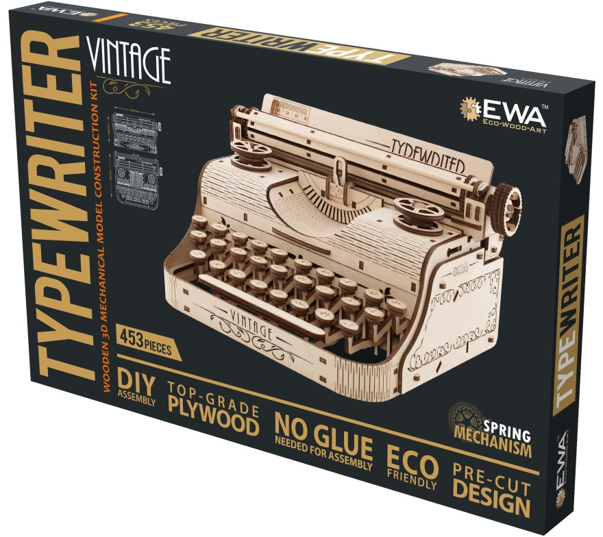 Механическая сборная модель EWA «Печатная машина» — шикарный и стильный подарок для детей и взрослых. Деревянный конструктор состоит из 453 деталей, которые вы легко соберёте в реалистичную копию раритетной пишущей машинки, благодаря подробной иллюстрированной инструкции в комплекте.