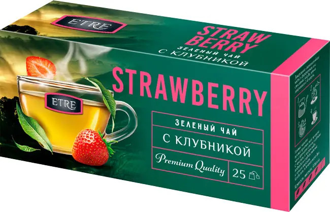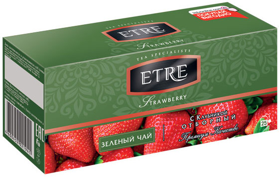Чай зеленый байховый китайский мелкий, ароматизатор «Клубника», кусочки ягод клубники.