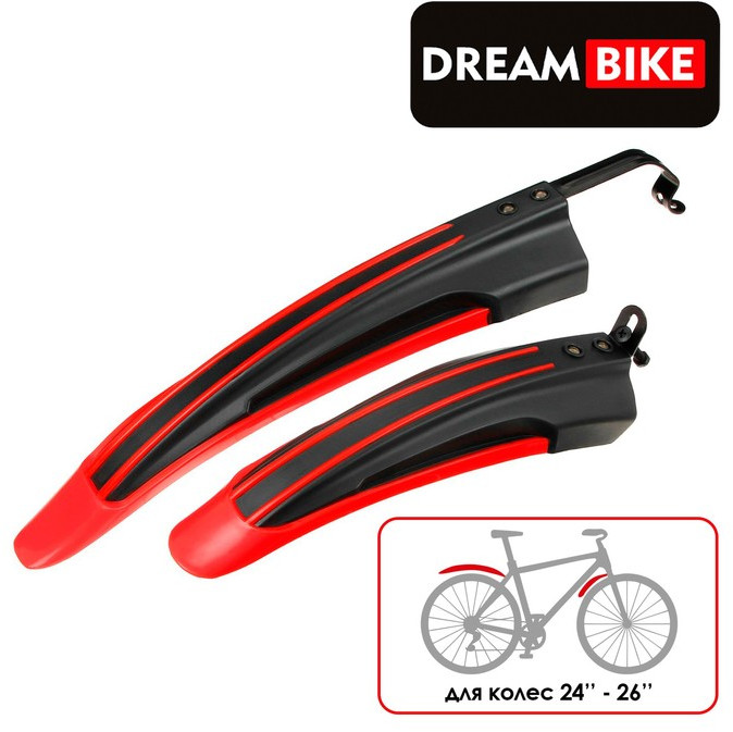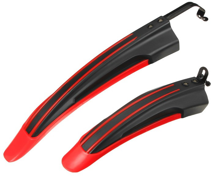 Комплект включает в себя 2 крыла: переднее и заднее. Крылья изготовлены из пластика и стали, предназначены для детских и подростковых велосипедов. Конструкция крыльев позволяет оставить монтажные кронштейны на велосипеде для быстрой установки и снятия.
