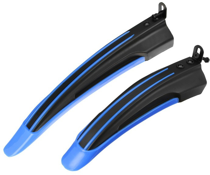 Комплект включает в себя 2 крыла: переднее и заднее. Крылья изготовлены из пластика и стали, предназначены для детских и подростковых велосипедов. Конструкция крыльев позволяет оставить монтажные кронштейны на велосипеде для быстрой установки и снятия.