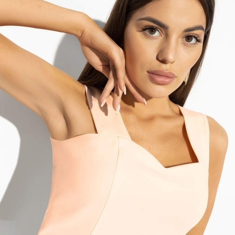 Сшит топ неплохо, аккуратно, материал приятный, цвет не розовый, а скорее персиковый, нежный.