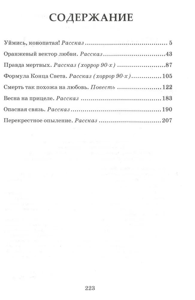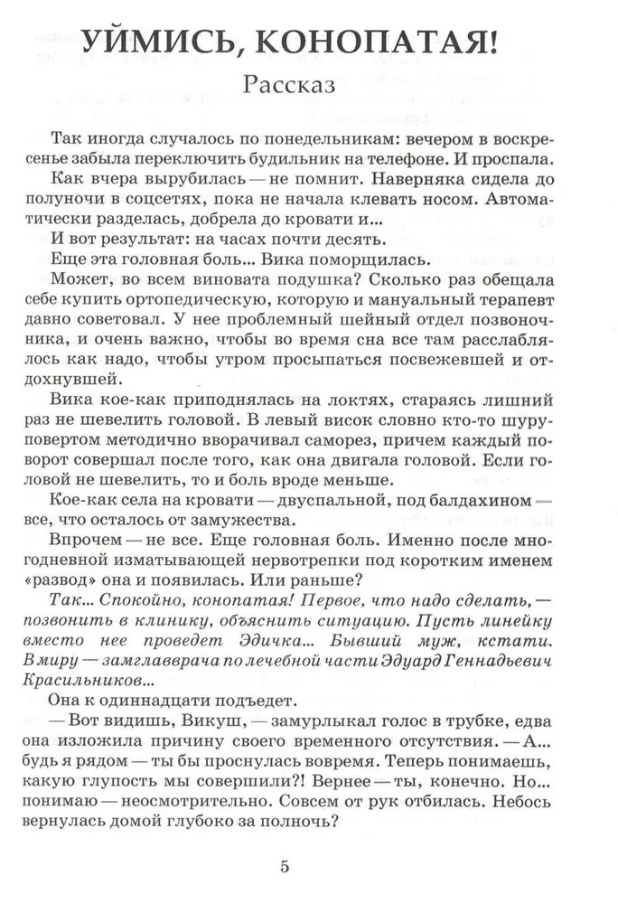 Уймись, конопатая! Сборник экстремальной прозыВ данный момент этот товар отсутствует в продаже. Возможно, у нас найдется аналогичный или похожий товар здесь. Серия: Аллея Никогда не знаешь, что ждёт тебя за тем поворотом, что ворвётся в твою жизнь со следующей секундой бытия... Предательство близкого человека, прикосновение чего-то потустороннего или лавинообразная всепоглощающая страсть, не оставляющая ни малейшего шанса остаться в стороне. В книге, которую ты, читатель, держишь в руках, несколько рассказов и повесть. На первый взгляд, они, как лебедь, рак и щука, тащат каждый в свою сторону, в свой жанр. Тут и любовь, и мистика, и хоррор, а подчас — и всё вместе. Но у них есть и общее: необычность сюжетов, непредсказуемость финалов, глубина и пронзительность чувств. |