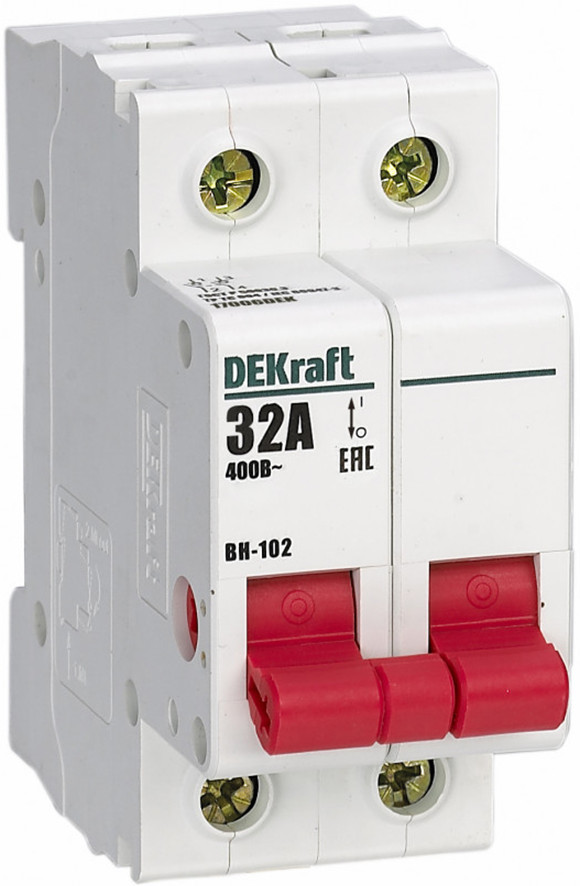 💳 Оплатить за товар можно при получении 🇰🇿 Есть бесплатная доставка по Казахстану от 1 дня 🎁 Копите бонусы с каждой покупки Выключатель-разъединитель серии ВН-102 DEKraft; 2P; номинальный ток 32 А; установка — на DIN-рейку; установочное положение — любое. Выключатели-разъединители применяются для ручного включения/отключения сетей напряжением до 400 В. Специальные мостиковые контакты обеспечивают надежный разрыв цепи; они полностью исключают возможность перекрытия дугой по изоляции. Усиленная рукоятка управления обеспечивает большое количество включений/отключений. |