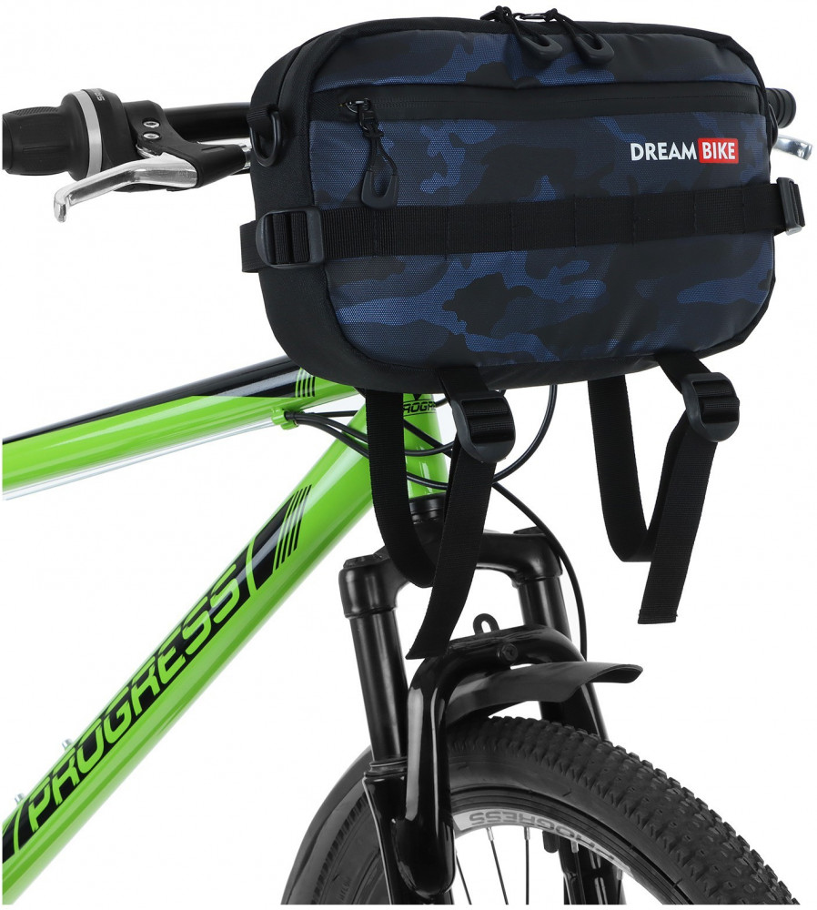 Велосумка подойдёт для всех видов велосипедов. Модель имеет 2 отдельных отсека и карман, крепится на руль велосипеда.