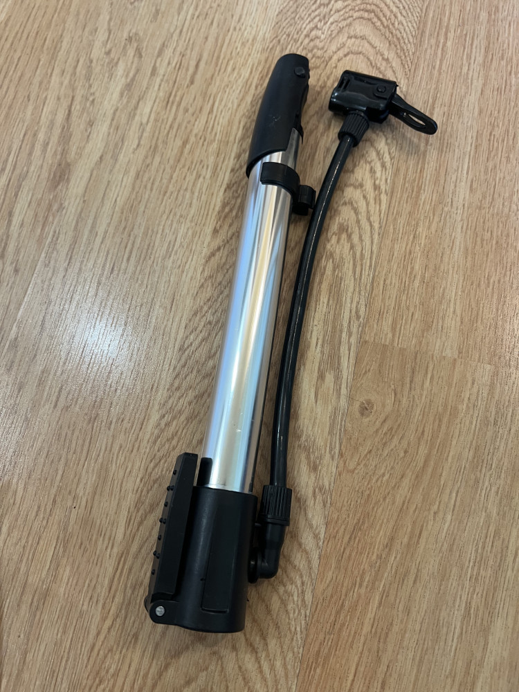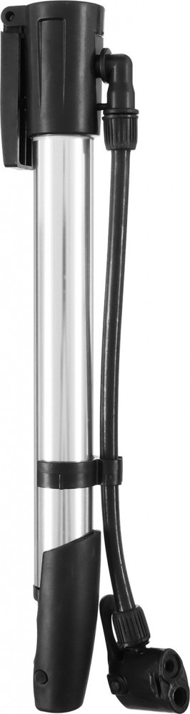 Компактный ручной насос имеет прочный пластиковый корпус и небольшой вес. Он позволит вам без труда подкачать сдутое колесо в любой ситуации на дороге.
