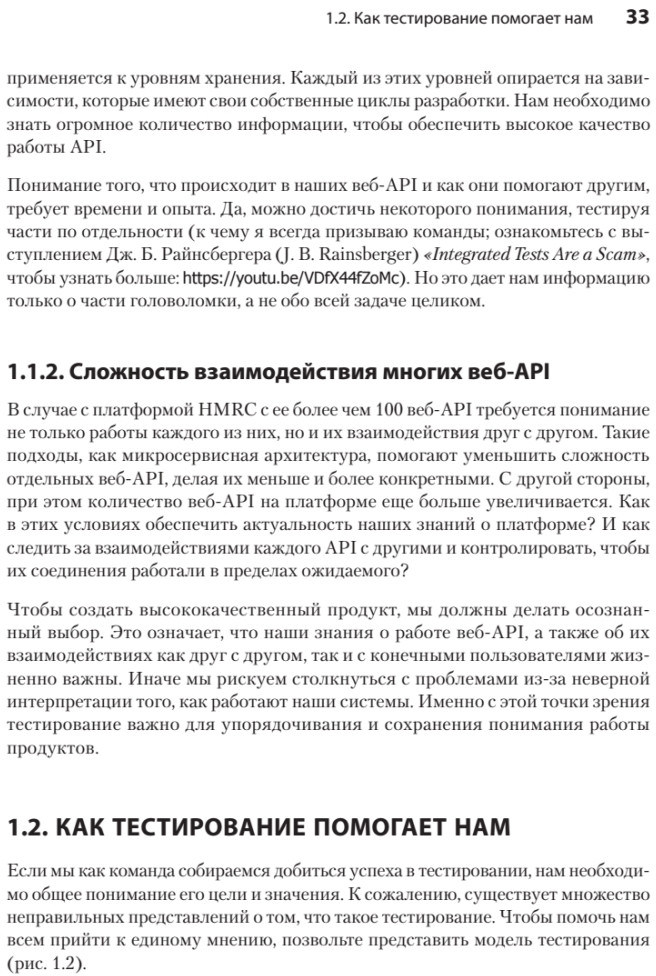 💳 Оплатить за товар можно при получении 🇰🇿 Есть бесплатная доставка по Казахстану от 1 дня 🎁 Копите бонусы с каждой покупки Серия: Библиотека программиста Веб-интерфейсы — лицо приложения, и они должны быть совершенными. Внедрение программы автоматизированного тестирования — лучший способ убедиться, что ваши API готовы к работе. «Тестирование веб-API» — это уникальное практическое руководство, включающее в себя описание всех этапов: от начального проектирования набора тестов до методов документирования, реализации и предоставления высококачественных API. Вы познакомитесь с обширным набором методов тестирования — от исследовательского до тестирования продакшен-кода, а также узнаете, как сэкономить время за счет автоматизации с использованием стандартных инструментов. Книга поможет избежать многих трудностей при тестировании API. |