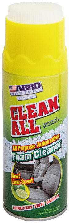 Очиститель универсальный ABRO MASTERS с ароматом лайма 400 мл — универсальный пенный очиститель. Используется для очистки и восстановления первоначального внешнего вида тканевых, ковровых, виниловых, резиновых, хромированных, никелированных и других покрытий.