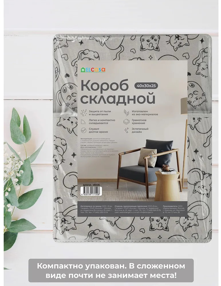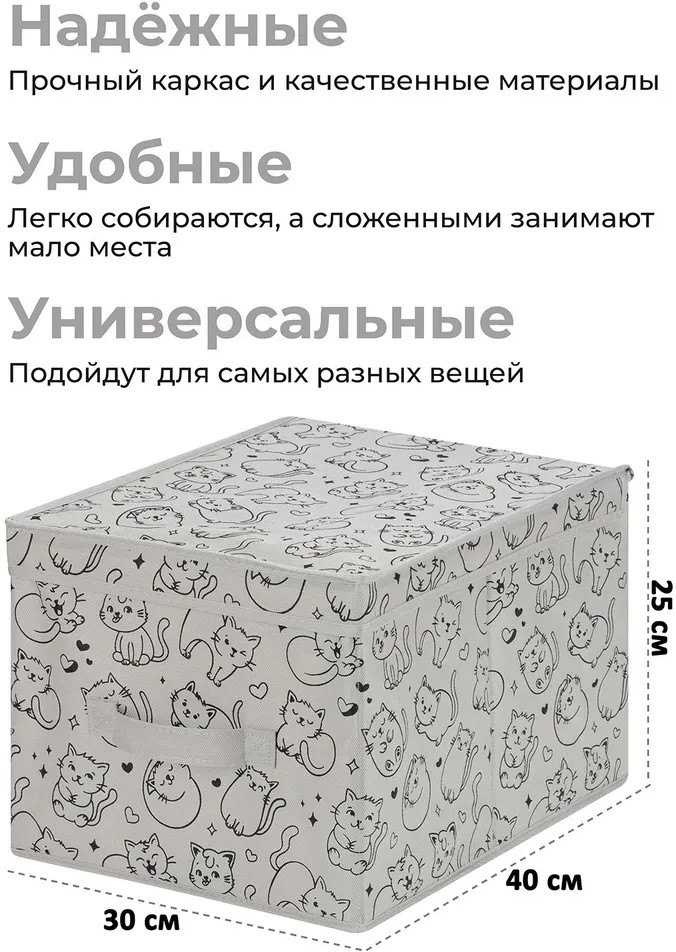 El Casa Короб складной для хранения «Котик черный на сером»В данный момент этот товар отсутствует в продаже. Возможно, у нас найдется аналогичный или похожий товар здесь. Короб складной с крышкой поможет организовать хранение в самых разных помещениях: в прихожей, гостиной, спальне, детской и любых других комнатах. Такие кофры эстетично выглядят. Их можно разместить не только в шкафу, но и на открытых полках. Помогут организовать систему хранения самых разных вещей в едином стиле, будь то игрушки, одежда, канцелярия, косметика, нижнее белье, носки, рукоделие или другие мелочи. Органайзер выполнен из нетканого материала и имеет плотные стенки и дно. Благодаря ручке коробку можно выдвигать как ящик. Такой контейнер станет удобным дополнением интерьера и поможет эффективно использовать каждый сантиметр пространства в вашем доме. |