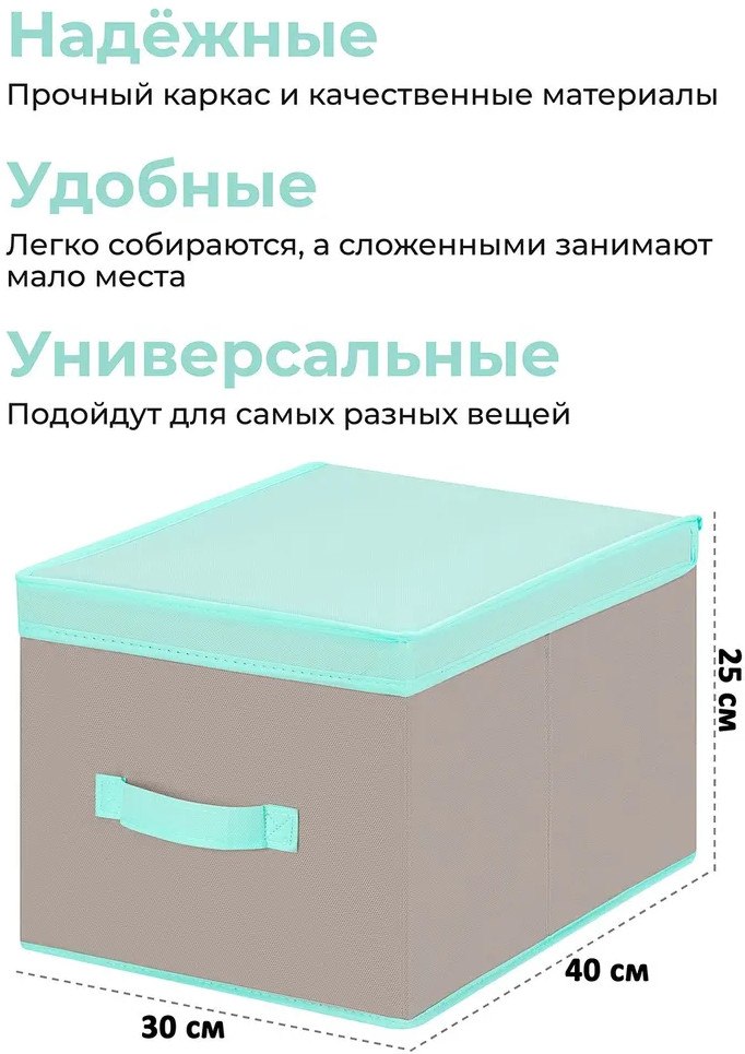 El Casa Короб складной для хранения «Серый с крышкой тиффани»В данный момент этот товар отсутствует в продаже. Возможно, у нас найдется аналогичный или похожий товар здесь. Короб складной с крышкой поможет организовать хранение в самых разных помещениях: в прихожей, гостиной, спальне, детской и любых других комнатах. Такие кофры эстетично выглядят. Их можно разместить не только в шкафу, но и на открытых полках. Помогут организовать систему хранения самых разных вещей в едином стиле, будь то игрушки, одежда, канцелярия, косметика, нижнее белье, носки, рукоделие или другие мелочи. Органайзер выполнен из нетканого материала и имеет плотные стенки и дно. Благодаря ручке коробку можно выдвигать как ящик. Такой контейнер станет удобным дополнением интерьера и поможет эффективно использовать каждый сантиметр пространства в вашем доме. |
