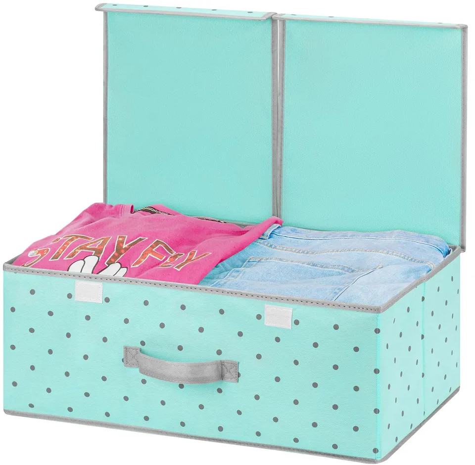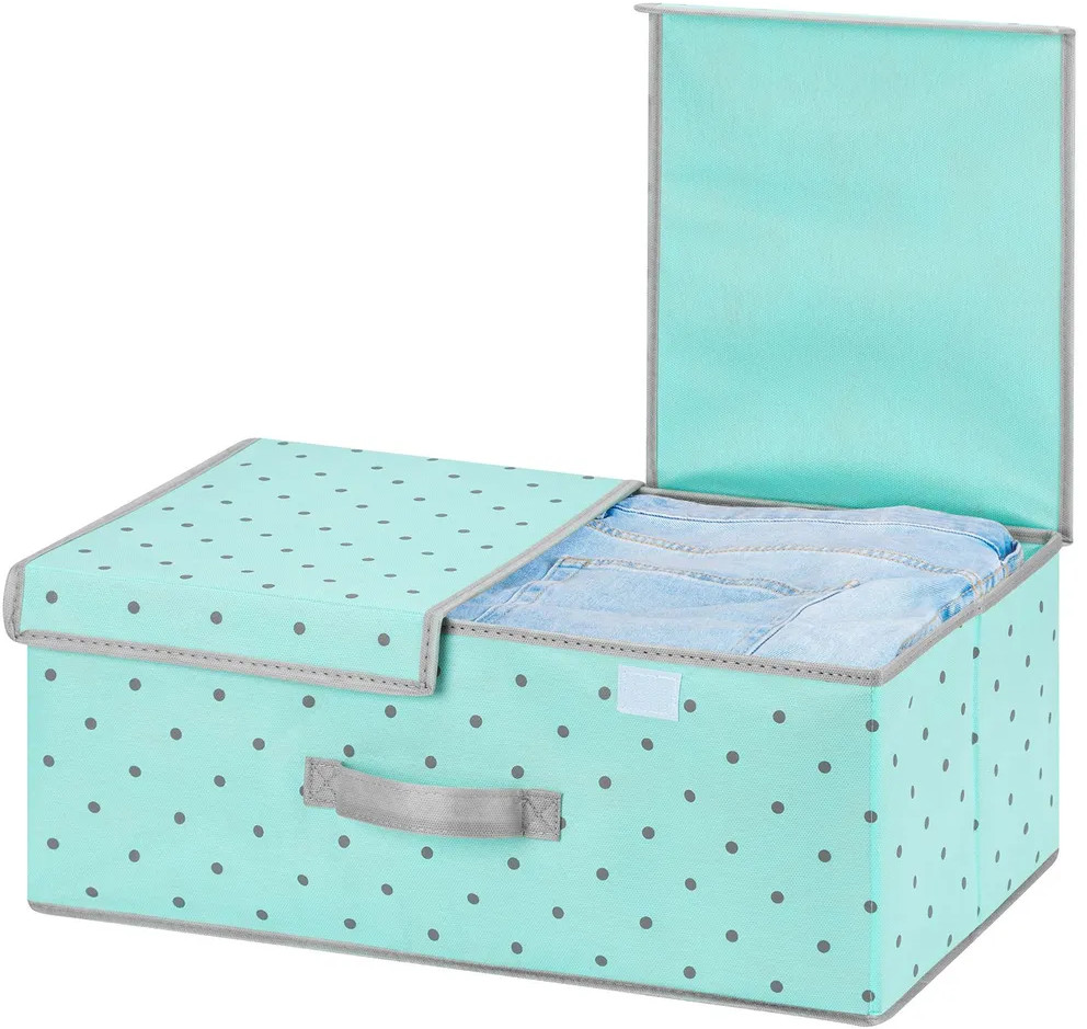 El Casa Короб складной для хранения «Тиффани серый горох с серой каймой»В данный момент этот товар отсутствует в продаже. Возможно, у нас найдется аналогичный или похожий товар здесь. Короб складной с двумя крышками на липучках поможет организовать хранение в самых разных помещениях: в прихожей, гостиной, спальне, детской и любых других комнатах. Такие кофры эстетично выглядят. Их можно разместить не только в шкафу, но и на открытых полках. Помогут организовать систему хранения самых разных вещей в едином стиле, будь то игрушки, одежда, канцелярия, косметика, нижнее белье, носки, рукоделие или другие мелочи. Органайзер выполнен из нетканого материала и имеет плотные стенки и дно. Благодаря ручке коробку можно выдвигать как ящик. Такой контейнер станет удобным дополнением интерьера и поможет эффективно использовать каждый сантиметр пространства в вашем доме. |