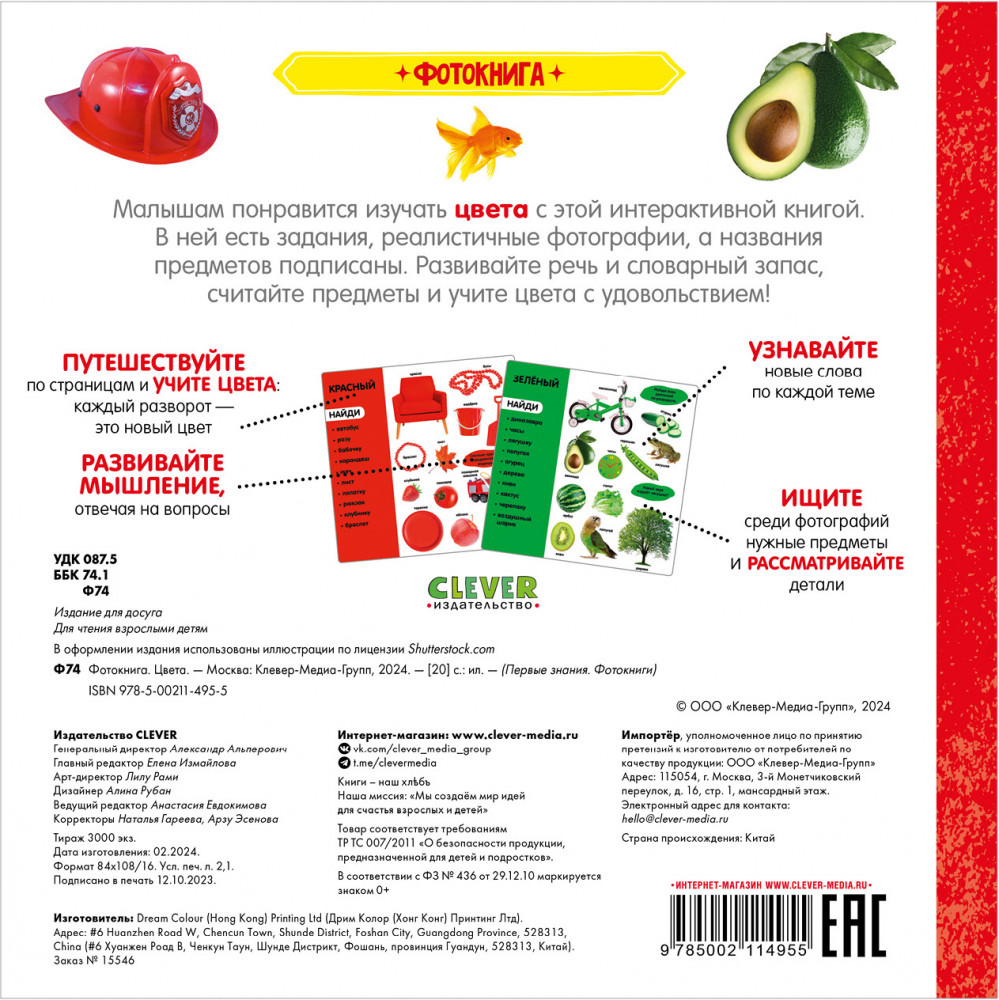 Фотокнига. ЦветаВ данный момент этот товар отсутствует в продаже. Возможно, у нас найдется аналогичный или похожий товар здесь. Серия: Первые знания. Фотокниги Малышам понравится изучать цвета с этой интерактивной книгой. В ней есть задания, реалистичные фотографии, а названия предметов подписаны. Развивайте речь и словарный запас, считайте предметы и учите цвета с удовольствием! |