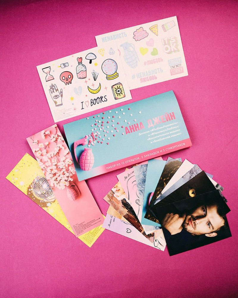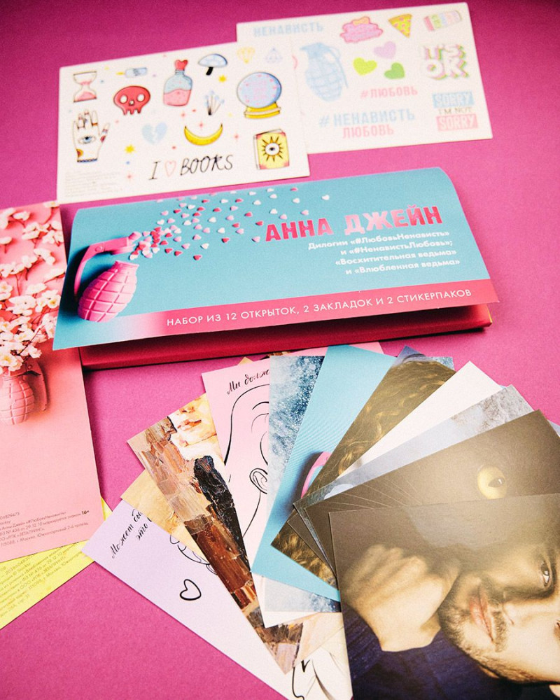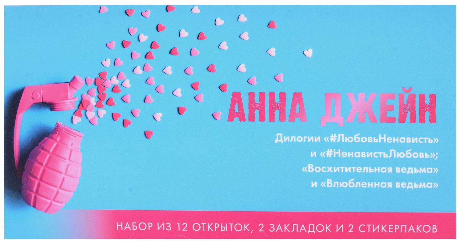 В данный момент этот товар отсутствует в продаже. Возможно, у нас найдется аналогичный или похожий товар здесь. Серия: #Trendbooks_special Конверт с набором мерча по дилогиям «Восхитительная ведьма» и «#ЛюбовьНенависть» Анны Джейн. Лучшее дополнение к хорошей книге — это набор с тематическим мерчом по ней! В конверте красочные открытки, закладки и стикерпаки. Мерч вдохновлен оформлением и героями книг Анны Джейн: дилогии «Восхитительная ведьма» и «Влюбленная ведьма», дилогии «#ЛюбовьНенависть» и «#НенавистьЛюбовь». Каждая открытка сделана из плотного картона, оборот открыток максимально облегченный, чтобы вы могли написать на них все что захотите.