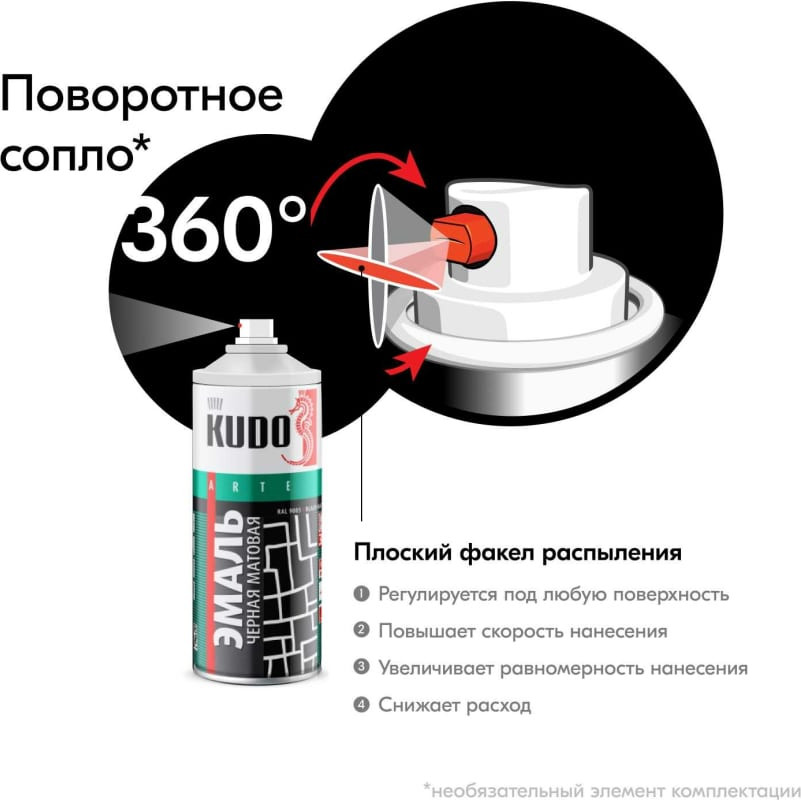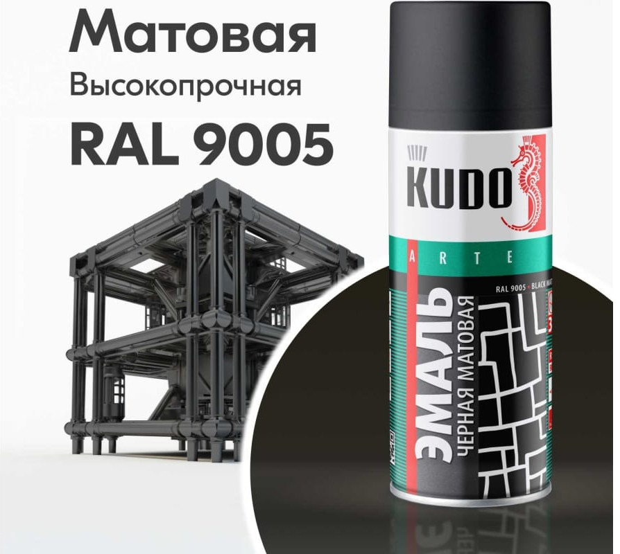 KUDO Краска аэрозольная, 9005 черный матовый