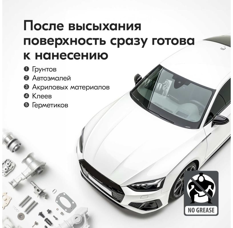 Высококачественный состав на основе неагрессивных растворителей. Обезжириватель применяется при подготовке различных деталей к окрашиванию для очистки и обезжиривания поверхности с целью обеспечения необходимой адгезии лакокрасочных материалов и получения однородного покрытия без кратеров, пор и морщин. Способствует увеличению срока службы покрытия. Активные компоненты состава эффективно удаляют силикон, масляные и жировые загрязнения, смазочные материалы, воск, грязь, нагар.