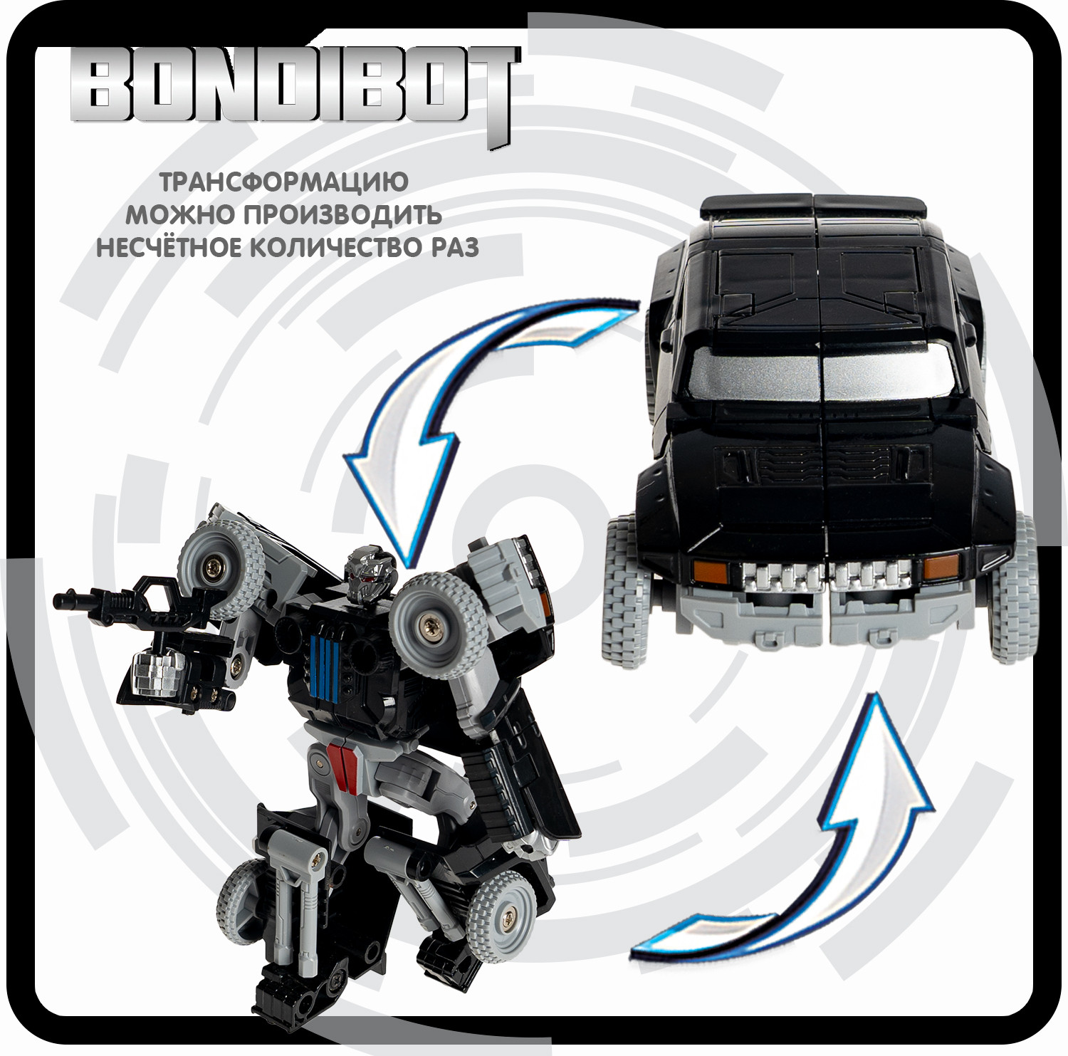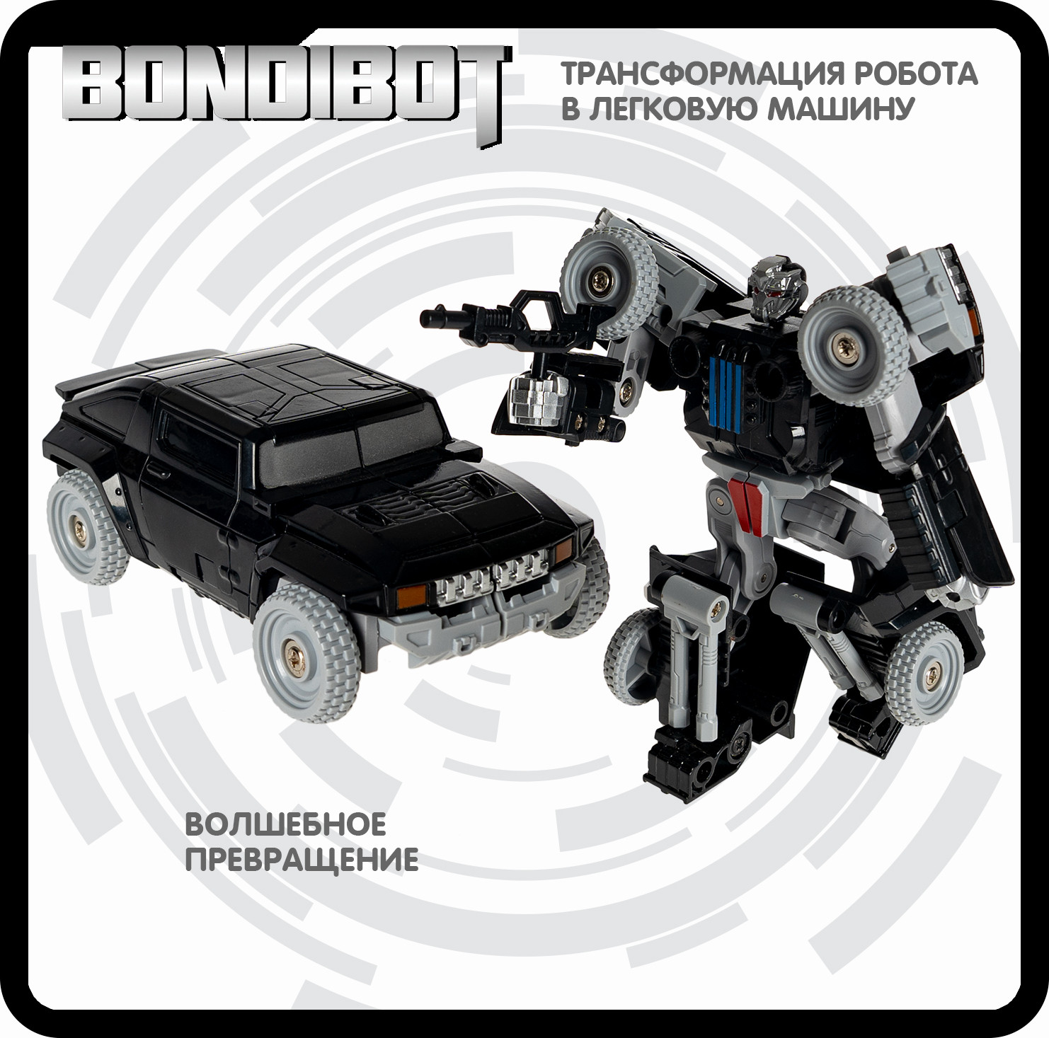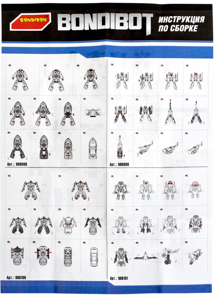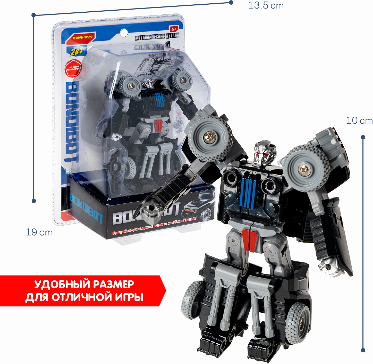Bondibon Трансформер «Робот-внедорожник»В данный момент этот товар отсутствует в продаже. Возможно, у нас найдется аналогичный или похожий товар здесь. Серия: Bondibot Черный трансформер «Робот-внедорожник» 2в1 серии Bondibot от Bondibon непременно порадует маленьких любителей приключений. Две интересные игрушки в одной с металлическими деталями надолго увлекут ребенка. Соберите всю серию и сделайте большого робота 5 в 1! Превращайте бесстрашного воина в джип и обратно сколько угодно раз! Ведь у игрушки качественные металлические детали и прочные соединения. Фантазируйте и придумывайте захватывающие сюжеты! В процессе игры дети расширят кругозор, разовьют зрительно-моторную координацию движений, воображение и эмоциональный интеллект. Трансформер «Робот-внедорожник» 2в1 — замечательный подарок для мальчика. А из пяти моделей серии Вы сможете собрать большого робота, который вызовет у детей огромный восторг! О качестве и безопасности позаботился Бондибон. |