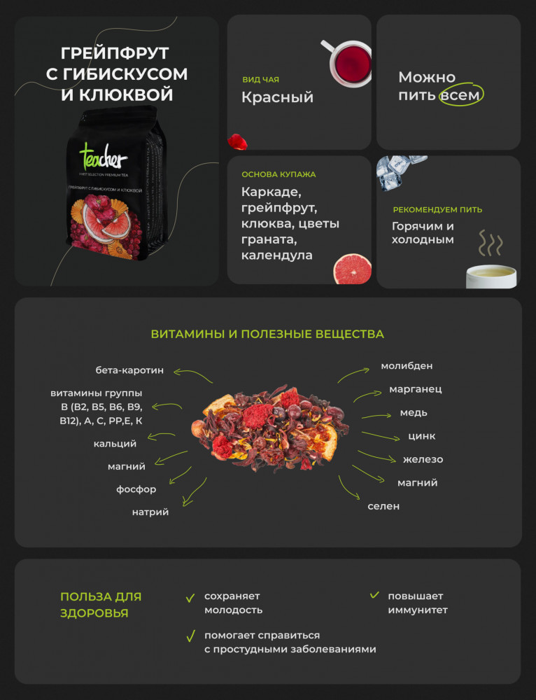 Teacher Чай листовой «Грейпфрут с гибискусом и клюквой»