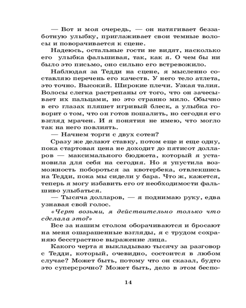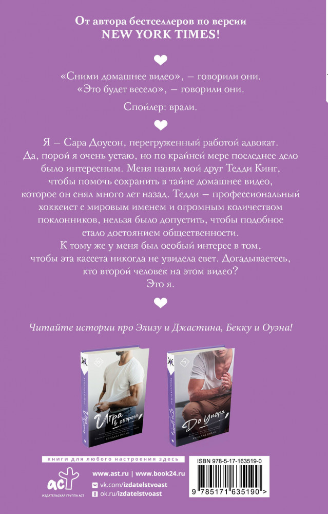 💳 Оплатить за товар можно при получении 🇰🇿 Есть бесплатная доставка по Казахстану от 1 дня 🎁 Копите бонусы с каждой покупки Серия: Запретное желание (м) Я — Сара Доусон, перегруженный работой адвокат. Да, порой я очень устаю, но по крайней мере последнее дело было интересным. Меня нанял мой друг Тедди Кинг, чтобы помочь сохранить в тайне домашнее видео, которое он снял много лет назад. А, учитывая, что Тедди — профессиональный хоккеист с мировым именем и огромным количеством поклонников, нельзя было допустить, чтобы подобное стало достоянием общественности. К тому же у меня был особый интерес в том, чтобы эта кассета никогда не увидела свет. Догадываетесь, кто второй человек на этом видео? Это я. |