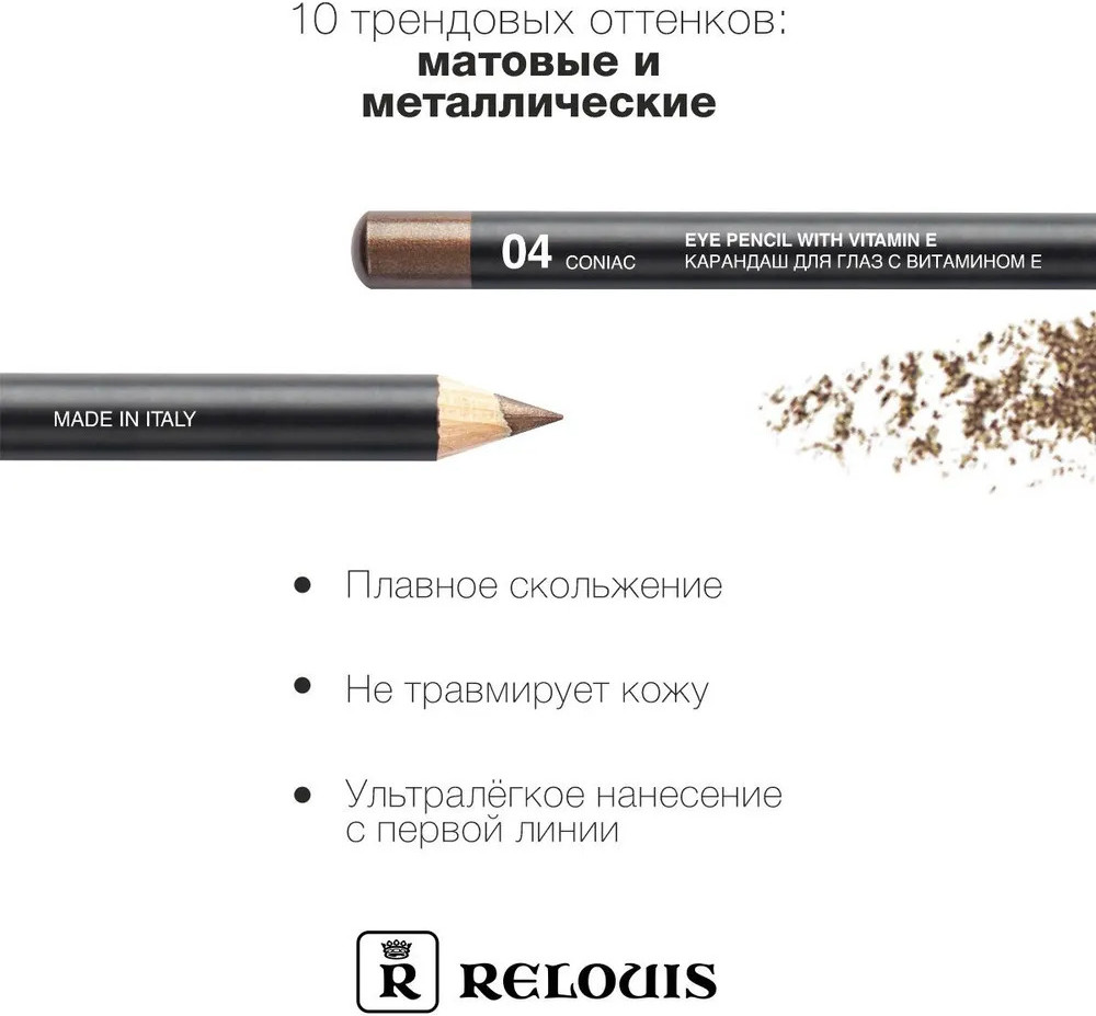 RELOUIS Карандаш для глаз с витамином Е, тон 04 coniac