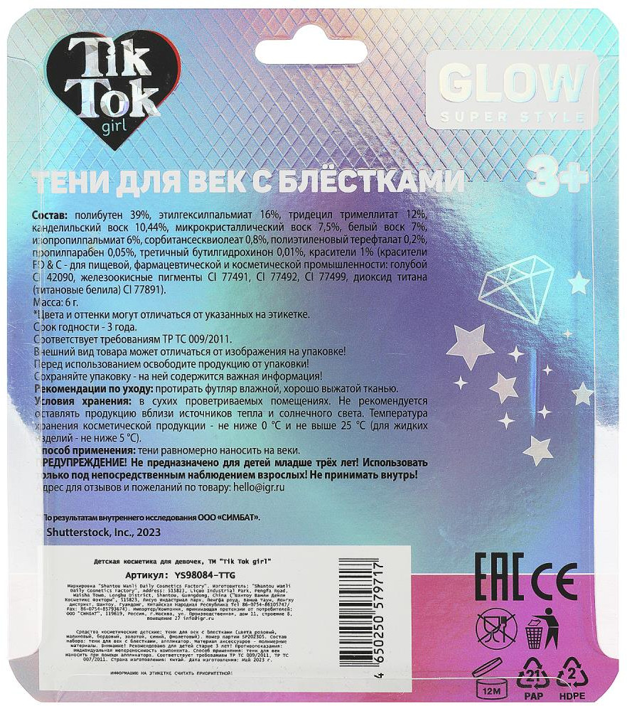 Tik Tok Girl Тени для век с блесткамиВ данный момент этот товар отсутствует в продаже. Возможно, у нас найдется аналогичный или похожий товар здесь. Девочки в любом возрасте хотят быть красивыми. Специально для них был разработан этот набор, состоящий из модных теней для век в красивом футляре. Маленькая принцесса обязательно оценит яркие цвета, волшебный блеск и стильную упаковку. Развивайте чувство стиля и вкуса, учите девочку создавать свой неповторимый образ вместе с косметикой ТМ «Tik Tok Girl». |