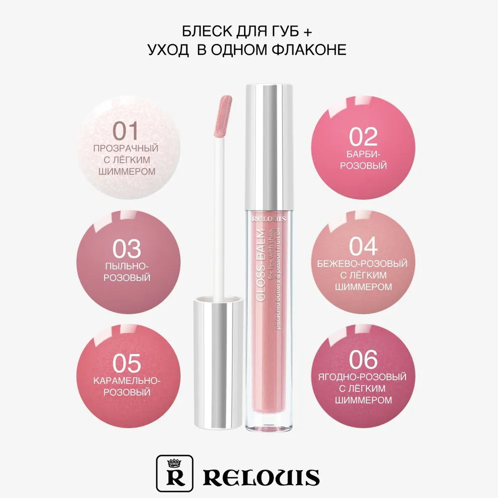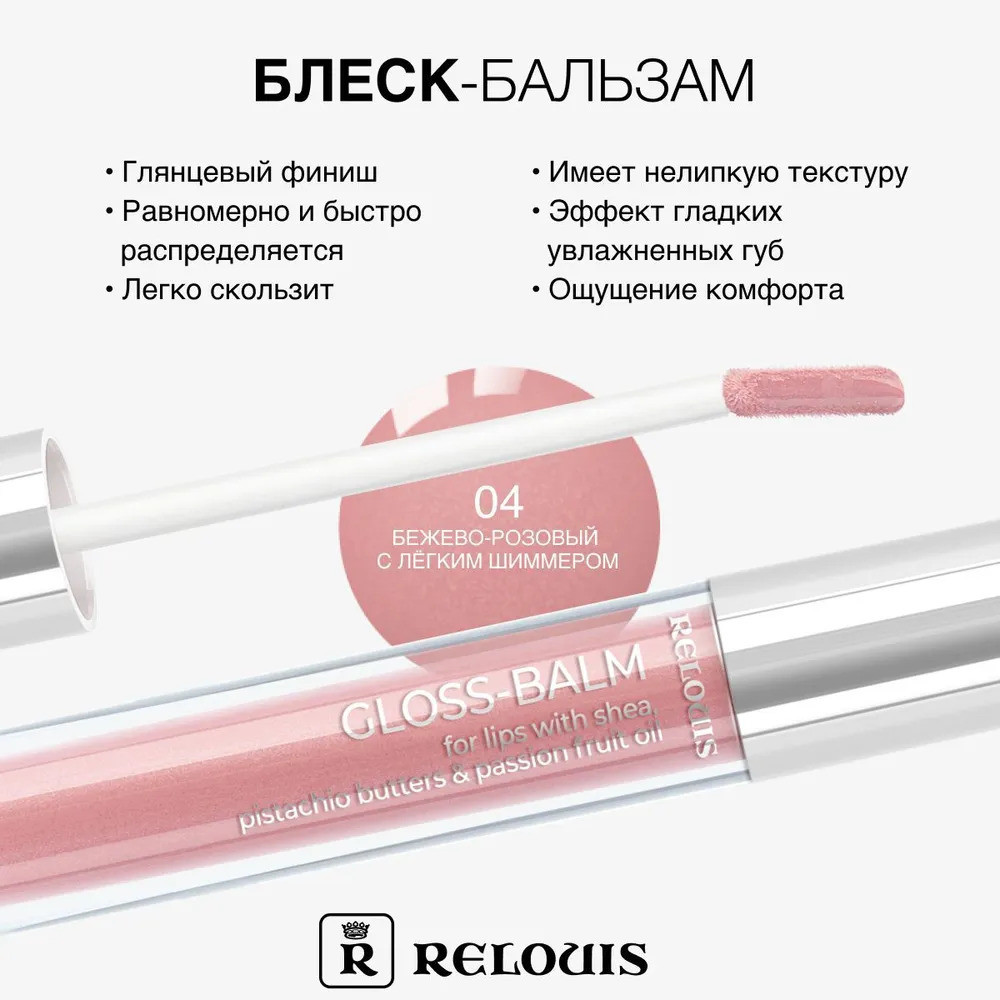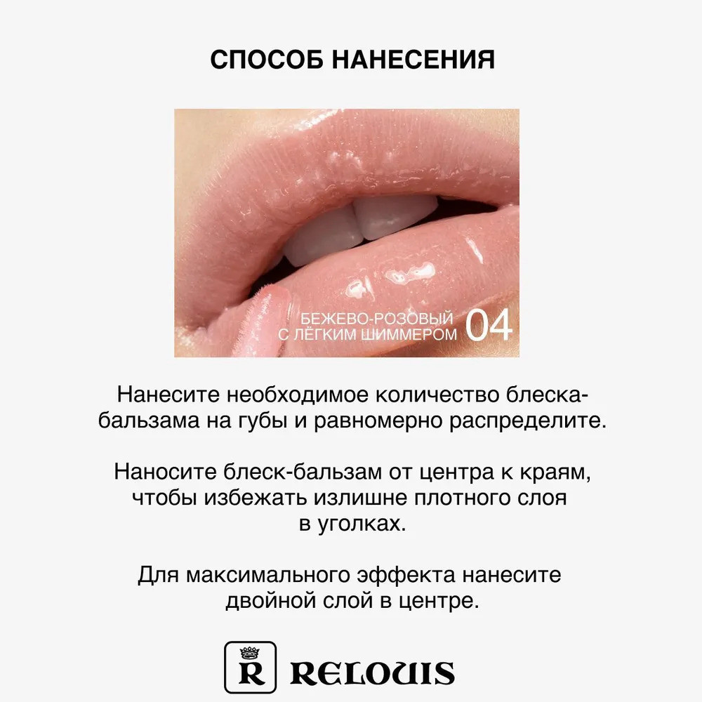 RELOUIS Блеск-бальзам для губ, тон 04 Baby nude