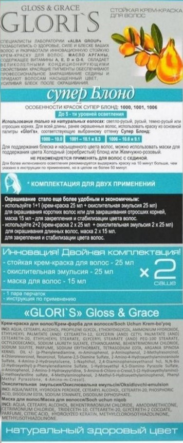 Отзывы «Крем-краска для волос «Glori's» 1000 Суперблонд Натуральный»