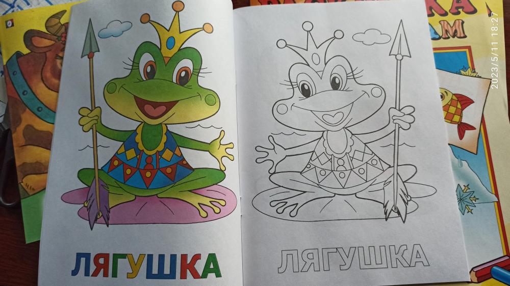 Красивые, красочные картинки, крупные. Раскраски такие же большие, четкие, есть маленькие детали. Раскраска и картинка выполнены в зеркальном исполнении, что добавляет интереса к раскраске.