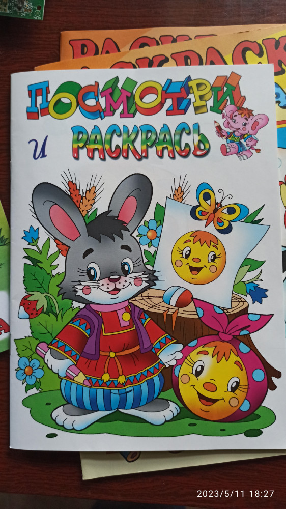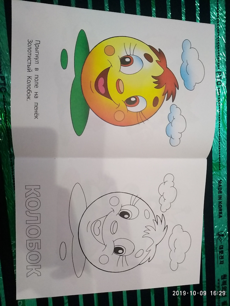 Обложка очень тонкая. Первая иллюстрация "Колобок" вначале книжки, а сама раскраска - в конце.