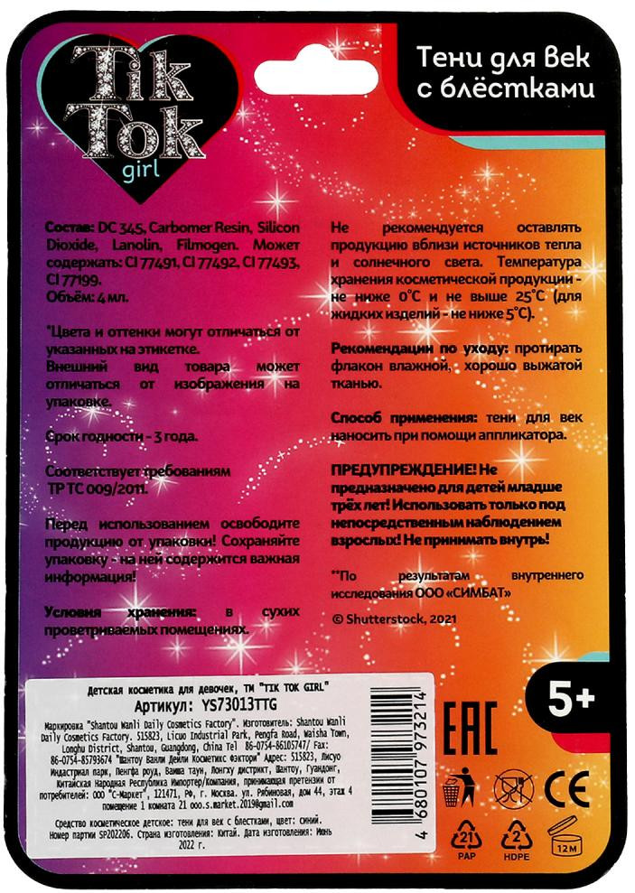 Tik Tok Girl Тени для век, оттенок СинийВ данный момент этот товар отсутствует в продаже. Возможно, у нас найдется аналогичный или похожий товар здесь. Тени для век с блёстками ТМ «Tik Tok Girl» — настоящий must-have для всех девушек, которые интересуются бьюти-трендами. Благодаря специальному аппликатору они хорошо наносятся и растушёвываются. С такими тенями легко можно создать как эффектный праздничный make-up, так и повседневный, использовав их в качестве яркого сверкающего акцента. Красивое сияние и стильный оттенок блёсток подчеркнут уникальный стиль и индивидуальность. Создавайте самые яркие ультрамодные образы вместе с косметикой ТМ «Tik Tok Girl». |