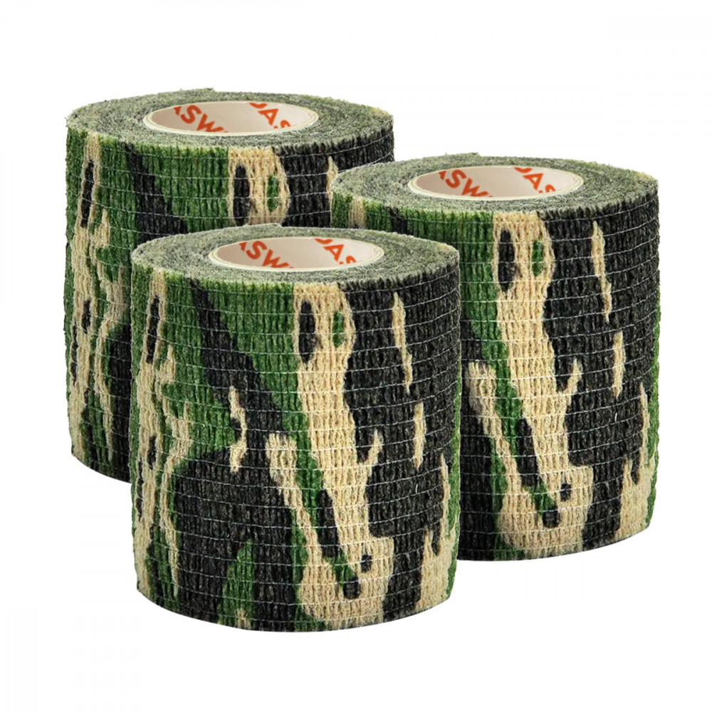 Когезивная эластичная тканная камуфляжная лента прекрасно обтекает любые поверхности. Улучшает удержание огнестрельного оружия и ножей в руке. Это очень важно при охоте в сложных условиях (скалы, густая растительность, непогода). Снижает «лязг» оружия, устраняет его блики. Обладает теплоизолирующими свойствами (охота при низких температурах). Предотвращает скольжение. Предохраняет предметы от внешних механических повреждений, грязи и влаги.