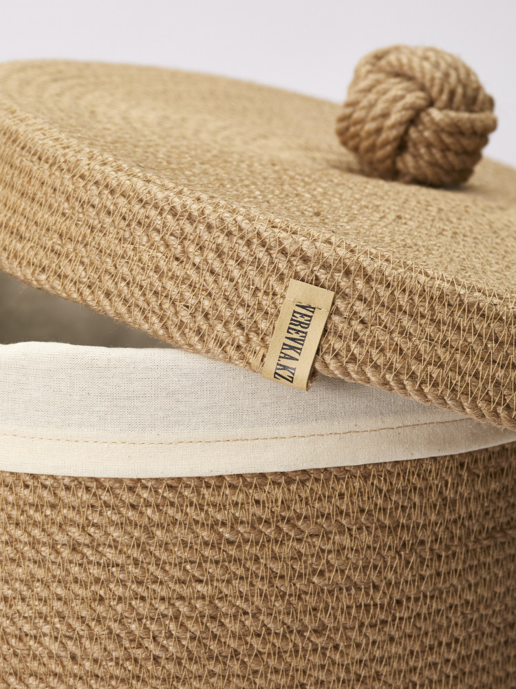 Джутовую корзину можно использовать во влажных помещениях, так как она отшита из натурального джутового волокна, который не капризен к влаге, очень износостойкий.