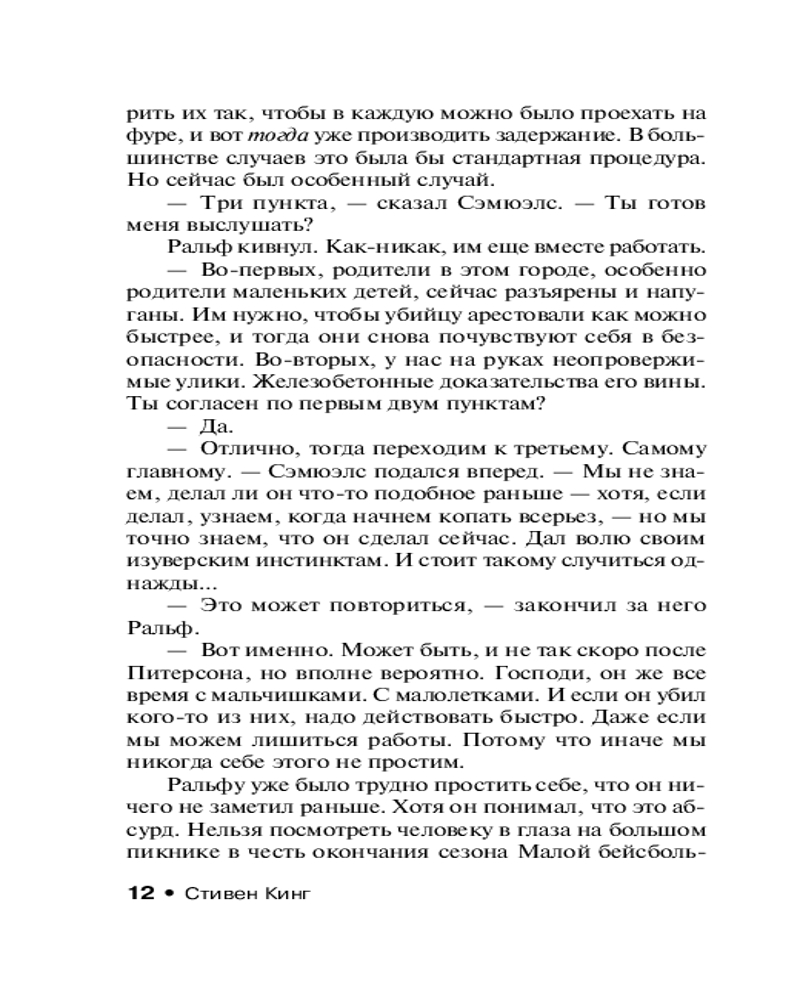💳 Оплатить за товар можно при получении 🇰🇿 Есть бесплатная доставка по Казахстану от 1 дня 🎁 Копите бонусы с каждой покупки Серия: Эксклюзивная классика В парке маленького городка Флинт-Сити найден труп жестоко убитого одиннадцатилетнего мальчика. Все улики указывают на одного человека — Терри Мейтленда. Тренер молодежной бейсбольной команды, преподаватель английского, муж и отец двух дочерей — неужели он способен на такое? К тому же у Терри есть неопровержимое алиби: на момент совершения преступления он был в другом городе. |