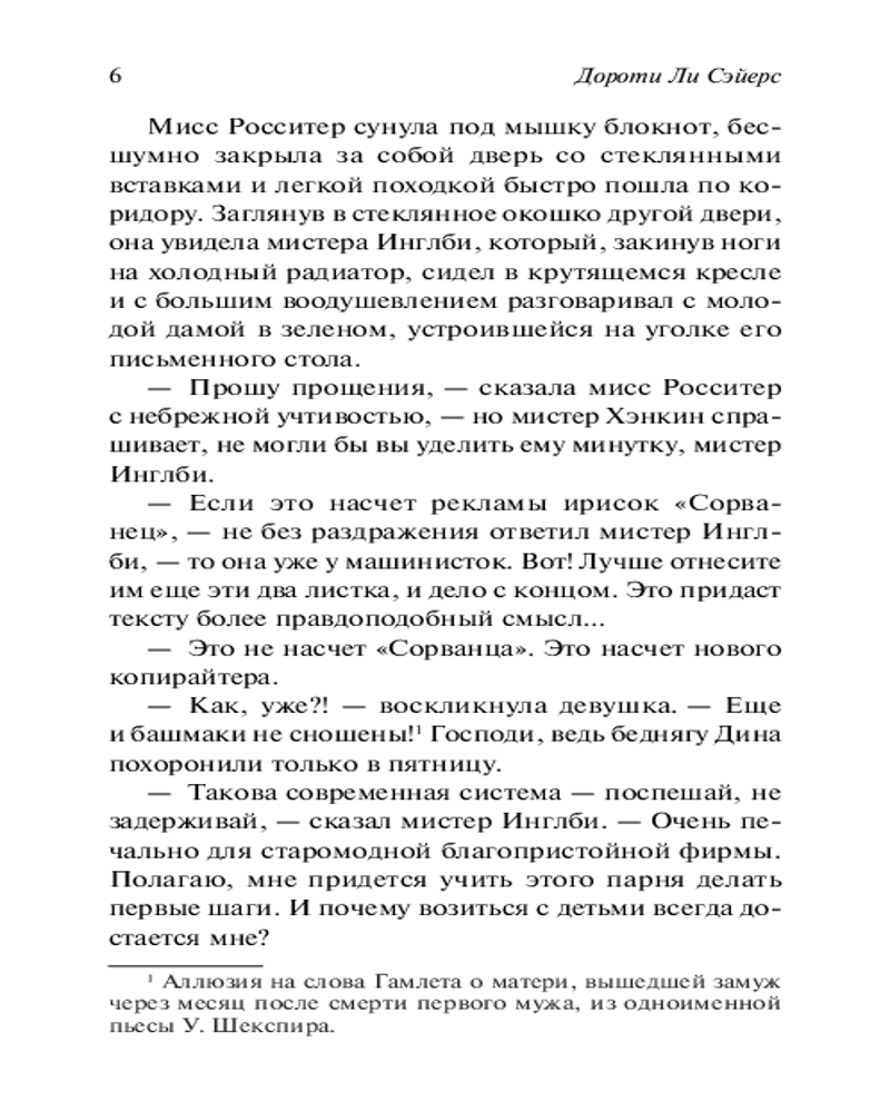 💳 Оплатить за товар можно при получении 🇰🇿 Есть бесплатная доставка по Казахстану от 1 дня 🎁 Копите бонусы с каждой покупки Серия: Эксклюзивная классика Успешный рекламный агент Виктор Дин погиб в результате нелепого несчастного случая, упав с лестницы в рекламном агентстве. Что ж, бывает всякое, не правда ли? Однако у Питера Уимзи есть все основания полагать: гибель Дина — не каприз судьбы, а хорошо спланированное убийство. Под видом нового сотрудника он внедряется в агентство и обнаруживает за респектабельным фасадом настоящее гнездо людей, по той или иной причине находящихся не в ладах с законом. Кто же из них и почему избавился от Дина?.. |