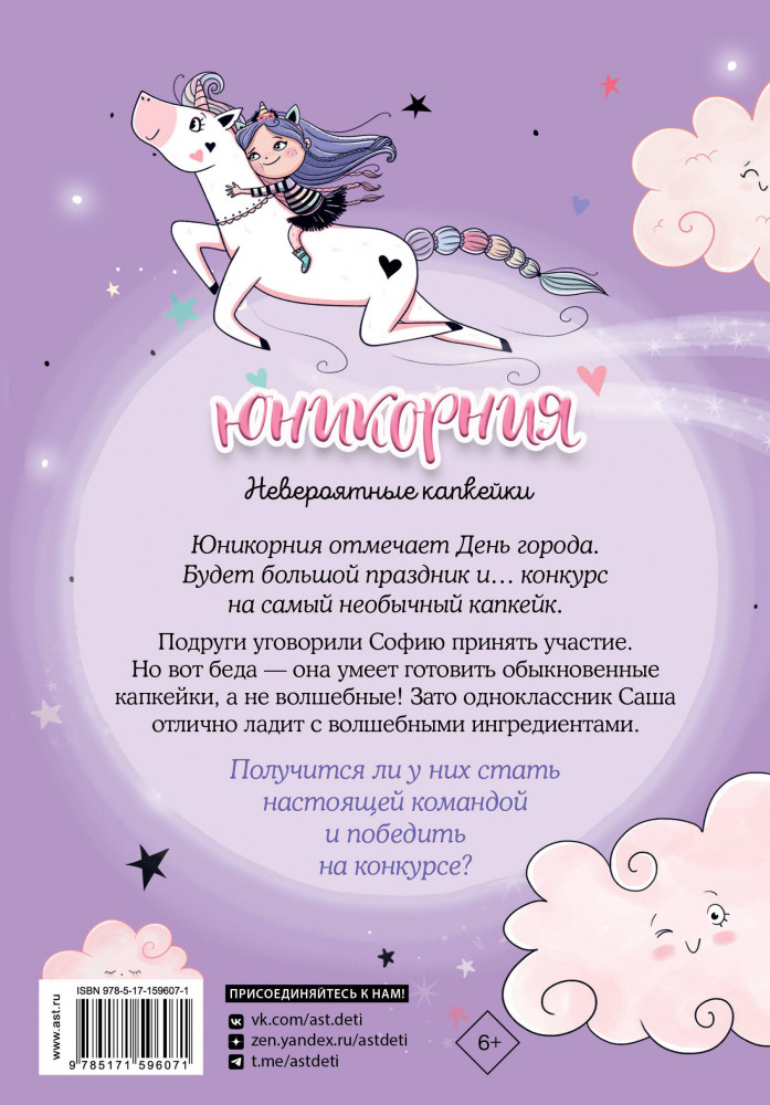 💳 Оплатить за товар можно при получении 🇰🇿 Есть бесплатная доставка по Казахстану от 1 дня 🎁 Копите бонусы с каждой покупки Серия: Юникорния Юникорния отмечает День города. Будет большой праздник и конкурс на самый необычный капкейк. Подруги уговорили Софию принять участие. Но вот беда — она умеет готовить обыкновенные капкейки, а не волшебные! Зато одноклассник Саша отлично ладит с волшебными ингредиентами. Получится ли у них стать настоящей командой и победить на конкурсе? |