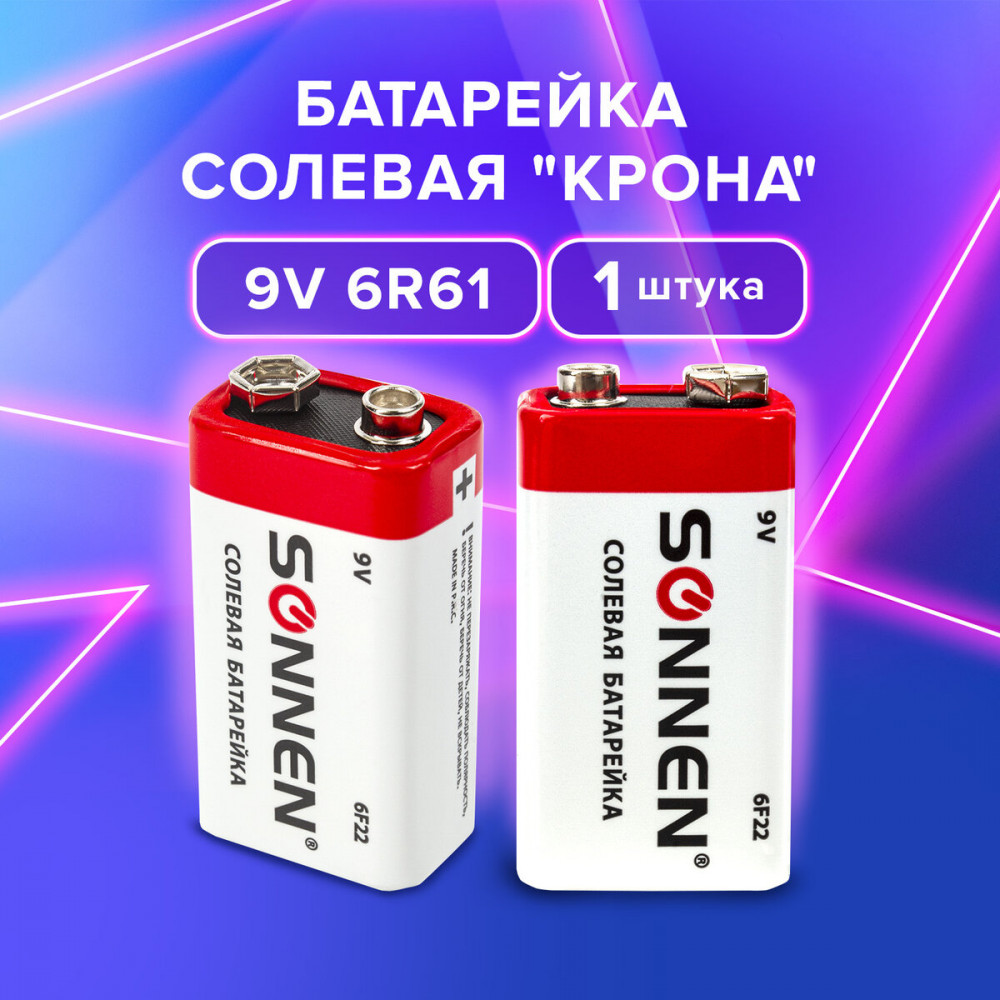 💳 Оплатить за товар можно при получении 🇰🇿 Есть бесплатная доставка по Казахстану от 1 дня 🎁 Копите бонусы с каждой покупки Солевые батарейки SONNEN типоразмера 9V идеально подходят для приборов с низким потреблением энергии. Рекомендуется использовать в электронных часах. |