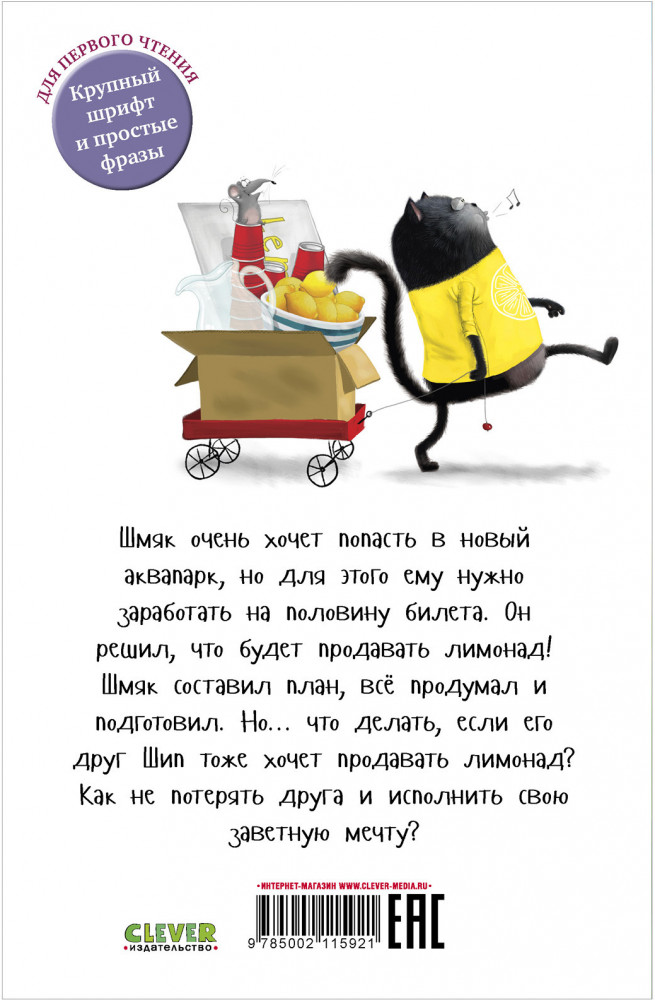 В данный момент этот товар отсутствует в продаже. Возможно, у нас найдется аналогичный или похожий товар здесь. Серия: Котенок Шмяк Шмяк очень хочет попасть в новый аквапарк, но для этого ему нужно заработать на половину билета. Он решил, что будет продавать лимонад! Шмяк составил план, всё продумал и подготовил. Но... что делать, если его друг Шип тоже хочет продавать лимонад? Как не потерять друга и исполнить свою заветную мечту? |