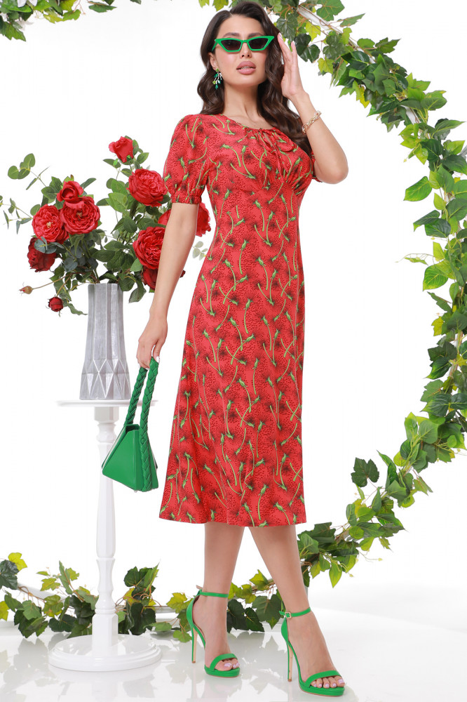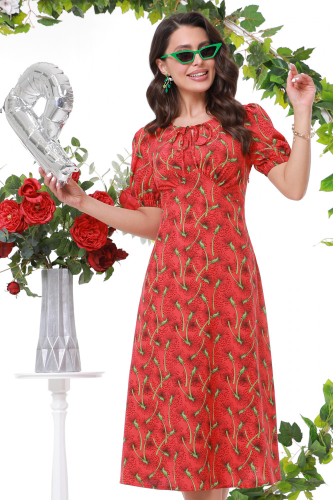 Приобрела платье красного цвета 46 размер, отлично село, по фигуре, цвет яркий, материал легкий, летящий( как одуванчики)
