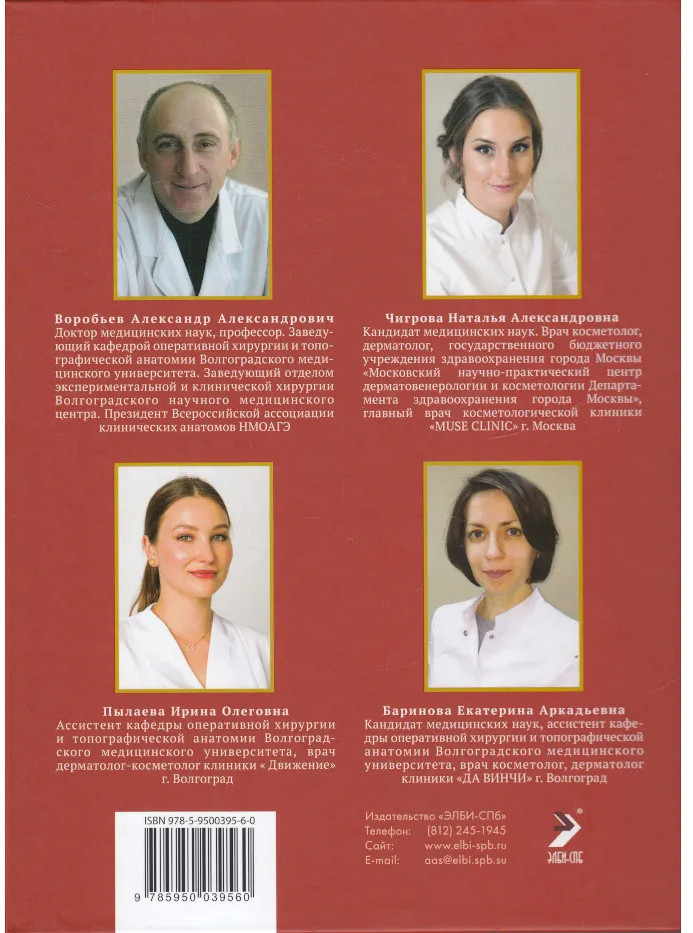 💳 Оплатить за товар можно при получении 🇰🇿 Есть бесплатная доставка по Казахстану от 1 дня 🎁 Копите бонусы с каждой покупки Данное издание адаптировано к нуждам практикующих косметологов. Детально изложена системная, проекционная, рельефная, функциональная, вариантная, возрастная и топографическая анатомия шеи. Систематизированы и введены новые представления об антропометрии шеи, рассмотрено препарирование шеи в учебных целях и представлен атлас поперечных, сагиттальных и фронтальных распилов шеи на различных уровнях. Подготовлена классификация и дана характеристика методов антивозрастной коррекции шеи. Благодаря большому количеству цветных иллюстраций и системному последовательному изложению материала появилась прекрасная возможность изучить детальное строение шеи, механизмы старения, познакомиться с новыми фундаментальными понятиями и овладеть современной анатомической терминологией. |