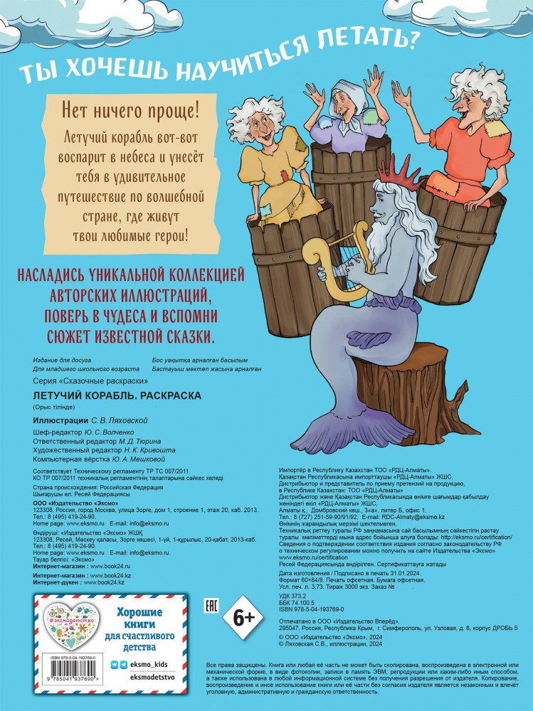 💳 Оплатить за товар можно при получении 🇰🇿 Есть бесплатная доставка по Казахстану от 1 дня 🎁 Копите бонусы с каждой покупки Серия: Сказочные раскраски Любимая родителями и детьми сказка «Летучий корабль» в увлекательном формате раскраски! Перед тобой — невероятная история о трубочисте Ване, задумавшего ради царевны Забавы построить волшебный летучий корабль. Готов отправиться на поиски удивительных приключений вместе с героями? Тогда скорее бери в руки карандаши! |