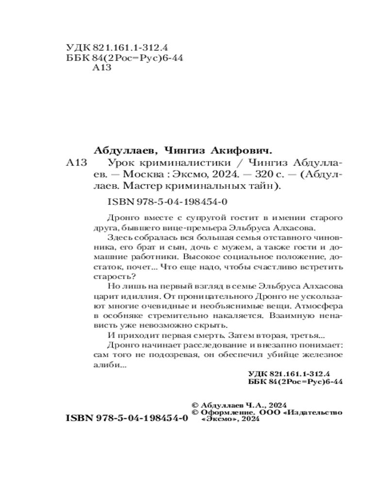 💳 Оплатить за товар можно при получении 🇰🇿 Есть бесплатная доставка по Казахстану от 1 дня 🎁 Копите бонусы с каждой покупки Серия: Абдуллаев. Мастер криминальных тайн (обложка) Злободневный остросоциальный детектив Чингиза Абдуллаева. Итог почти четырехлетнего молчания. Теперь знаменитый сыщик знает ответ на главный вопрос бытия. Великолепный эксперт Дронго изменил свое отношение к жизни. |