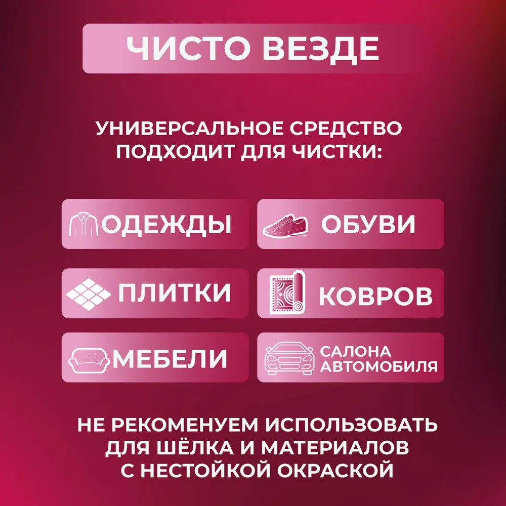 • активная формула позволяет очищать текстильные и ковровые покрытия от любых загрязнений;