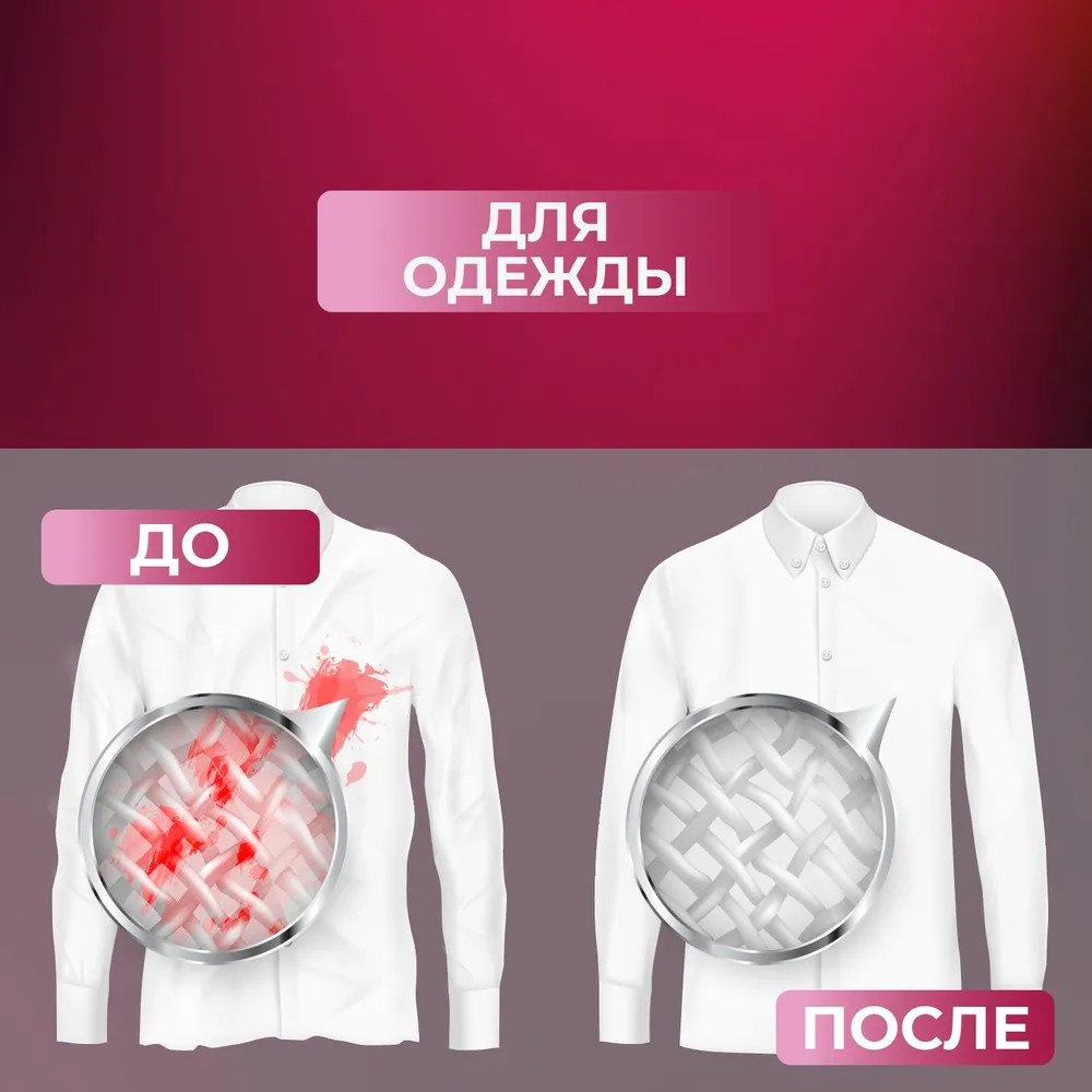 • благодаря активному кислороду, пятновыводитель удаляет загрязнения различного происхождения и усиливает белизну ткани;