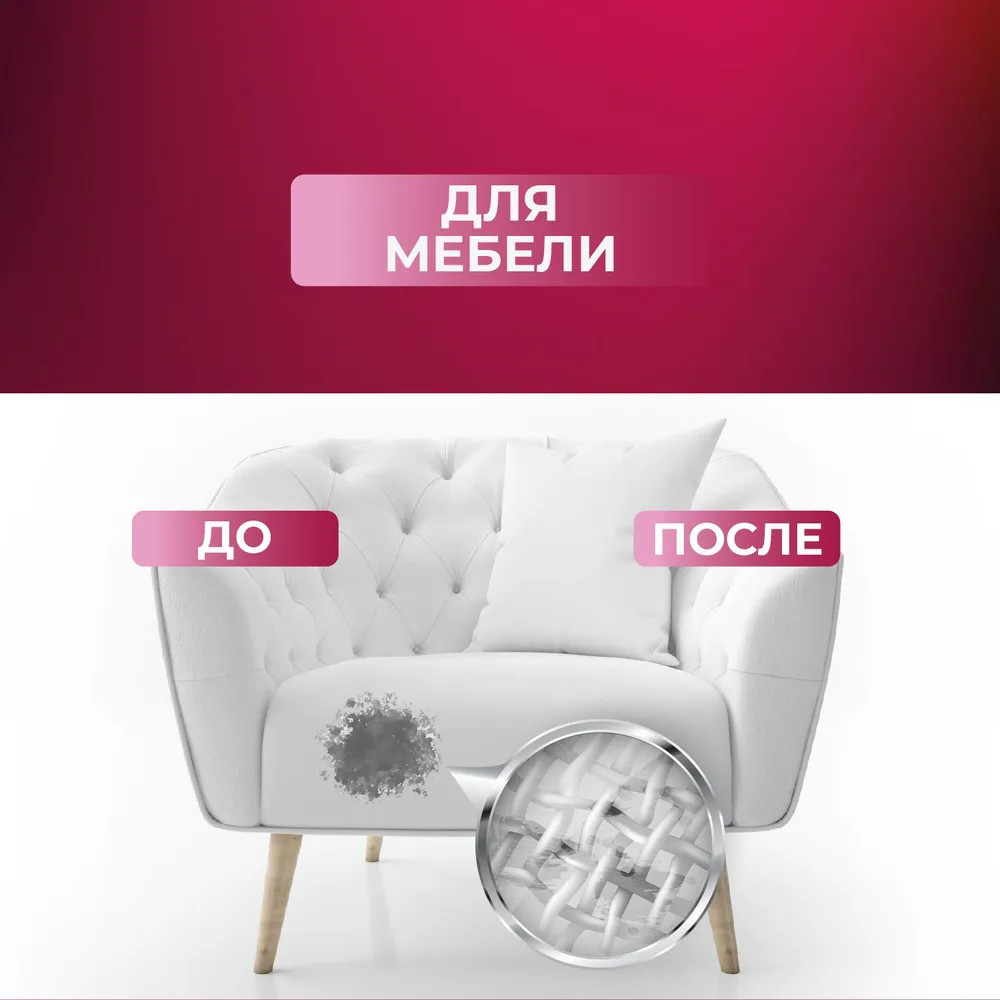 • применяется для чистки одежды, мягкой мебели, ковров, салона автомобиля и других текстильных / пластиковых изделий;