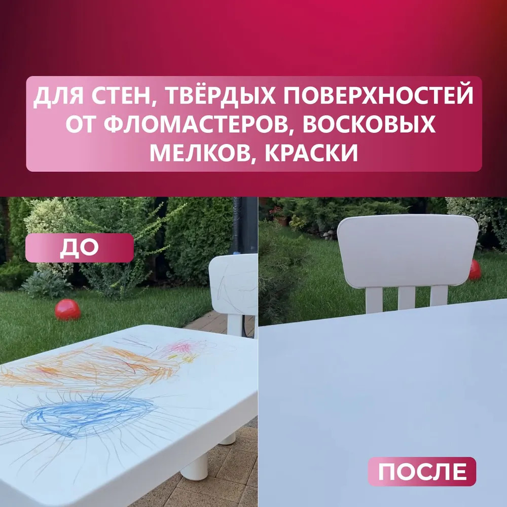 Применяется для чистки одежды, обуви, мягкой мебели, ковров, салона автомобиля и других текстильных / пластиковых изделий, керамической плитки и межплиточных швов, линолеума и ламината, пластиковых подоконников, дверей, варочных поверхностей, столешниц, для очистки поверхностей из мрамора и гранита. Эффективно очищает металлические детали автомобиля, а также легко очищает кузов автомобиля и лобовое стекло от следов насекомых.