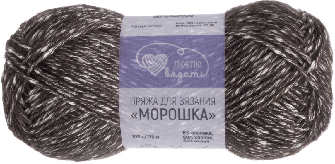 Люблю вязать Пряжа для вязания «Морошка», 888 Коричневый