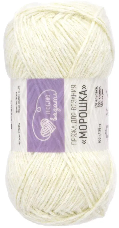 Люблю вязать Пряжа для вязания «Морошка», 001 Белый