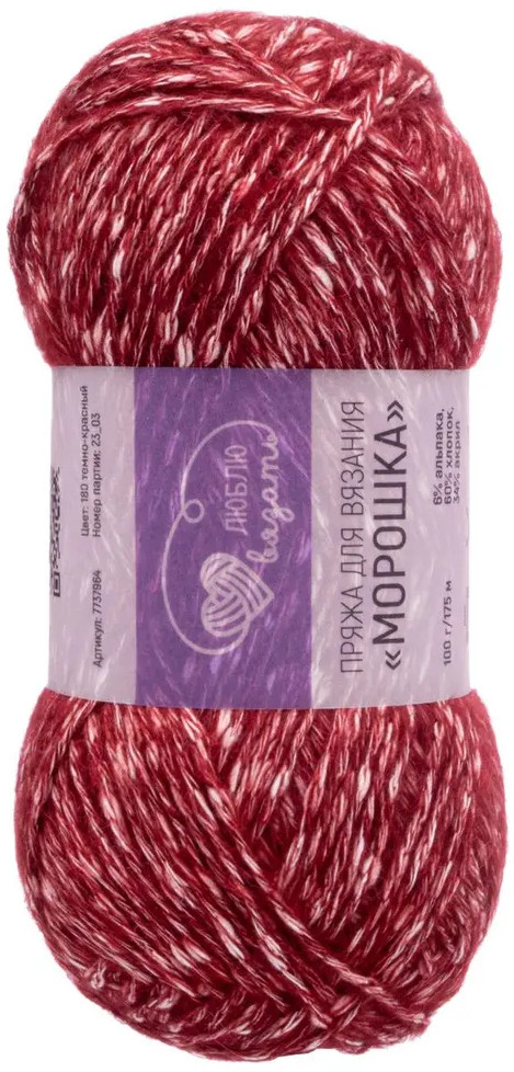 Люблю вязать Пряжа для вязания «Морошка», 180 Темно-красный