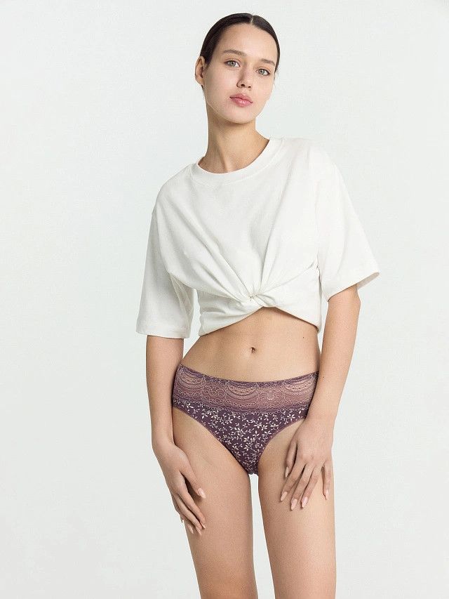 Удобные, красивые, приятные к телу, сидят на теле хорошо. Сначала показались большими (46 размер самые маленькие), но после стирки чуть плотнее сели, в самый раз. У меня ОБ 95, в самый раз, не вжимаются в кожу, но и не болтаются. Жаль, что такие только в средне-высоком варианте посадки, под брюки с низкой посадкой не пойдут.